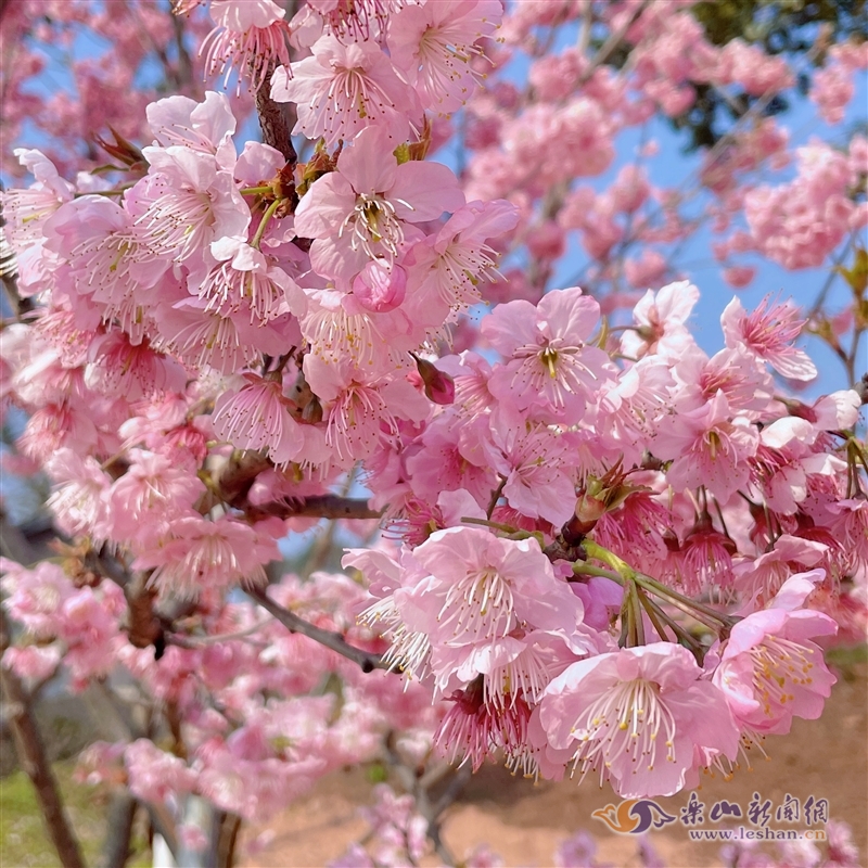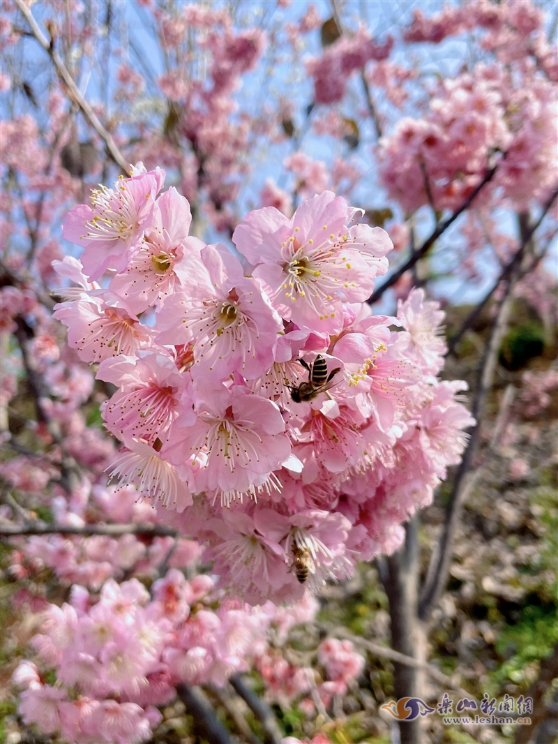乐山新闻网讯(记者 周柳)和风暖阳,花意争春。连日来的晴好天气,让市中区棉竹镇张铺儿村的青衣江樱花谷园区内成片的樱花迎着阳光热情绽放。