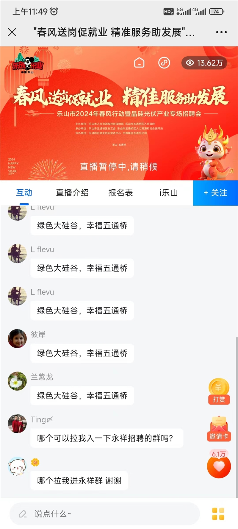乐山新闻网讯(记者 杨爵诚)聚力拼起步,奋战开门红。2月21日,五通桥区2024年“春风行动”暨晶硅光伏产业专场招聘会线上线下同步举行,共56家用人单位进场招聘,为返乡农民工、贫困家庭劳动力、高校毕业生、去产能职工等城乡劳动者提供操作工、电工、后勤人员等5000余个工作岗位。