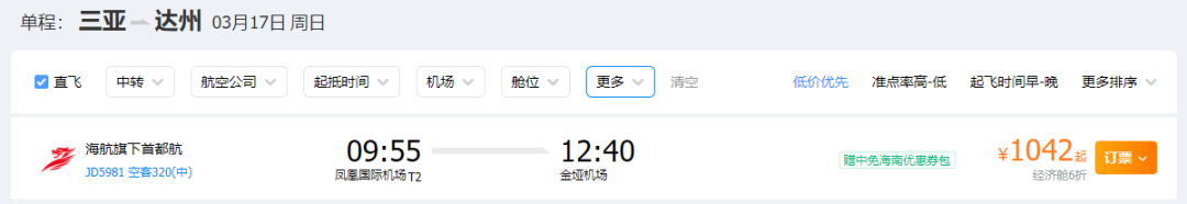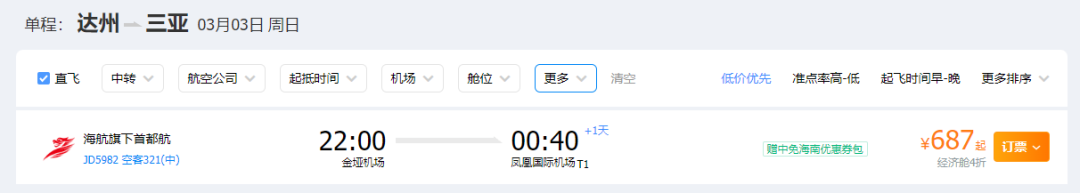 返程JD5982航班18:55从银川起飞,20:50抵达达州;22:00从达州起飞,00:40抵达三亚。