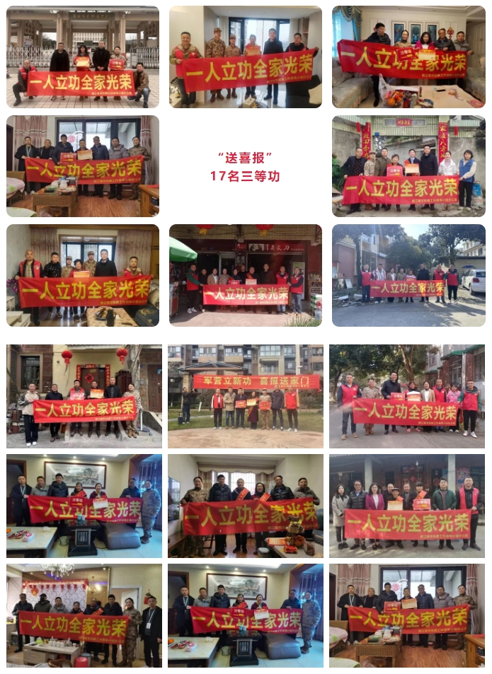 “建功在军营 喜报传家乡”,为持续营造拥军优属浓厚氛围,近日,都江堰市双拥工作领导小组办公室联合市人武部、各属地镇(街道)组成多个送喜报小组为都江堰市17名荣立三等功的现役军人家庭送去立功喜报和一次性奖励金。