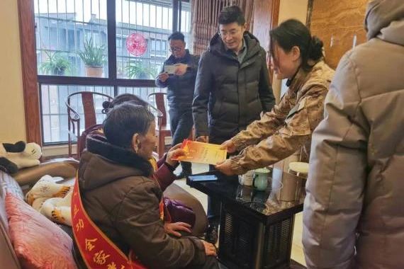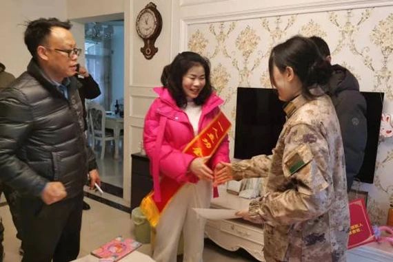 送喜报小组拉起横幅,为家属披上绶带,将喜报和一次性奖励金亲手送到他们手中,感谢家属们为部队培养了优秀人才。并与其亲切交谈,了解他们的身体状况和家庭生活情况。家属们对党和政府的关心表示感谢,纷纷表示将继续支持和鼓励子女扎根军营,珍惜荣誉,再立新功,为家乡添彩。
