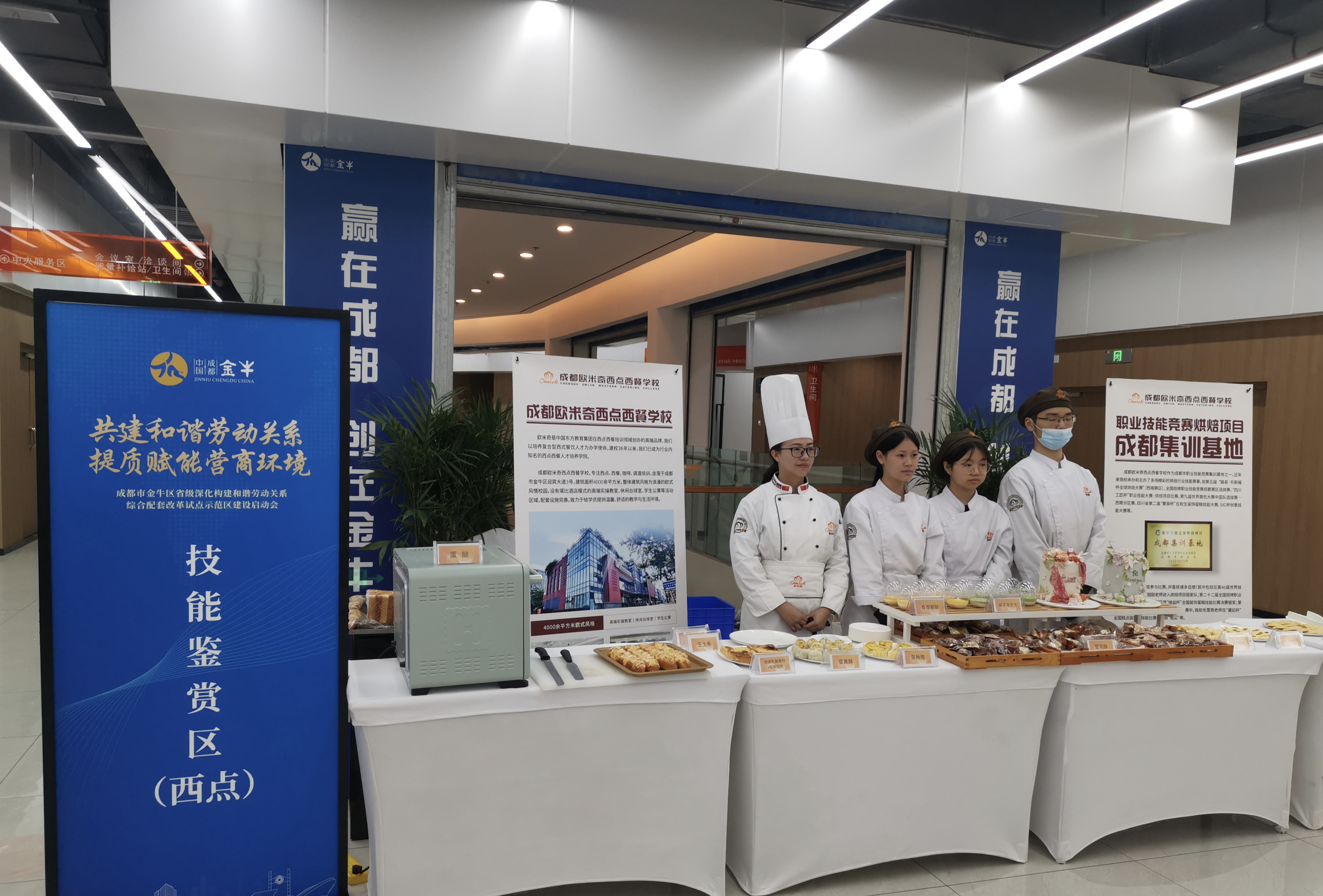 现场同步开展了和谐劳动关系、就业创业、社保、人才服务等相关政策宣传和茶艺大师工作室茶艺、西点烘焙技能展示等活动。