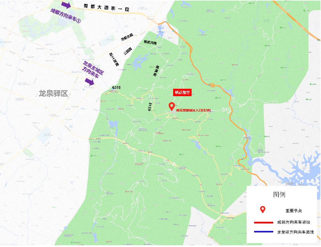 2.龙泉驿城区→318国道→桃花故里