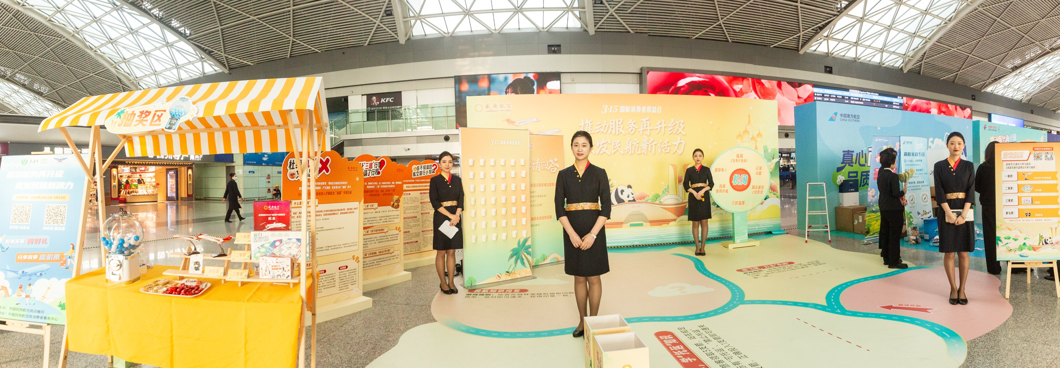 3月15日当日,成都航空在双流国际机场候机楼设立活动主题板,向旅客传递公司在提升服务水平、维护旅客合法权益等方面的具体举措,并对包括“机闹”整治、“三超行李”整治、首乘服务、投诉维权等民航服务热点内容进行了普及。
