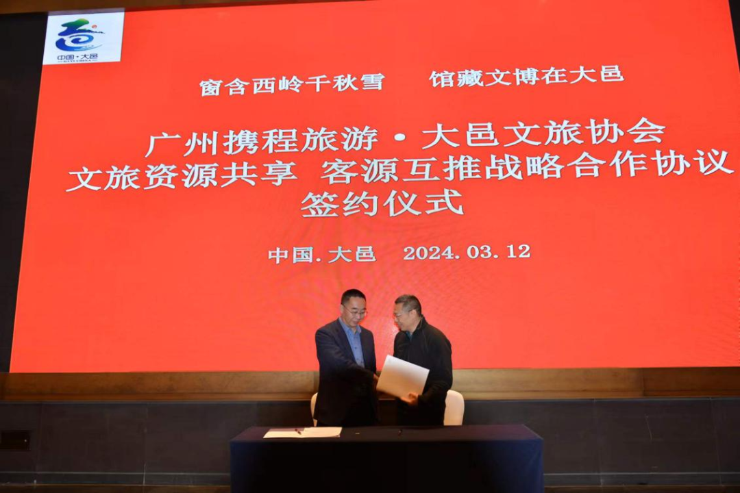 大邑县文体旅局、安仁博物馆特色小镇管委会、西岭雪山景区、刘氏庄园博物馆、大邑县文化旅游协会、成都市旅行社代表等,围绕“花开天府 安逸四川”主题,通过互动对话、路演等方式,对大邑旅游资源、精品旅游线路进行推介。会上,广州携程旅游与大邑县文旅协会现场签订了文旅资源共享、客源互推战略合作协议,达成战略合作。