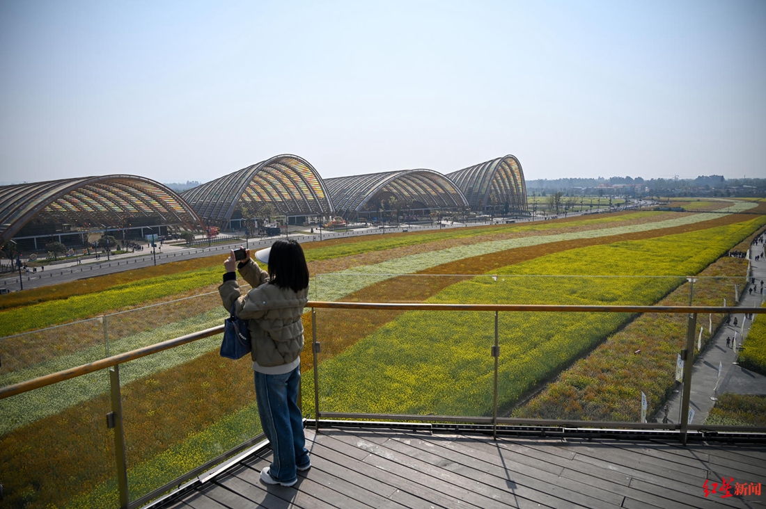 2024成都世园会将于4月26日至10月28日举行。3月21日,中央、省、市主流媒体一行走进成都世园会新津分会场承载地──天府农博园,通过实地走访天府农博创新中心、天府农博融媒体中心、G4农耕文明馆、青苗片区消费场景等特色点位,为公众揭晓分会场亮点。