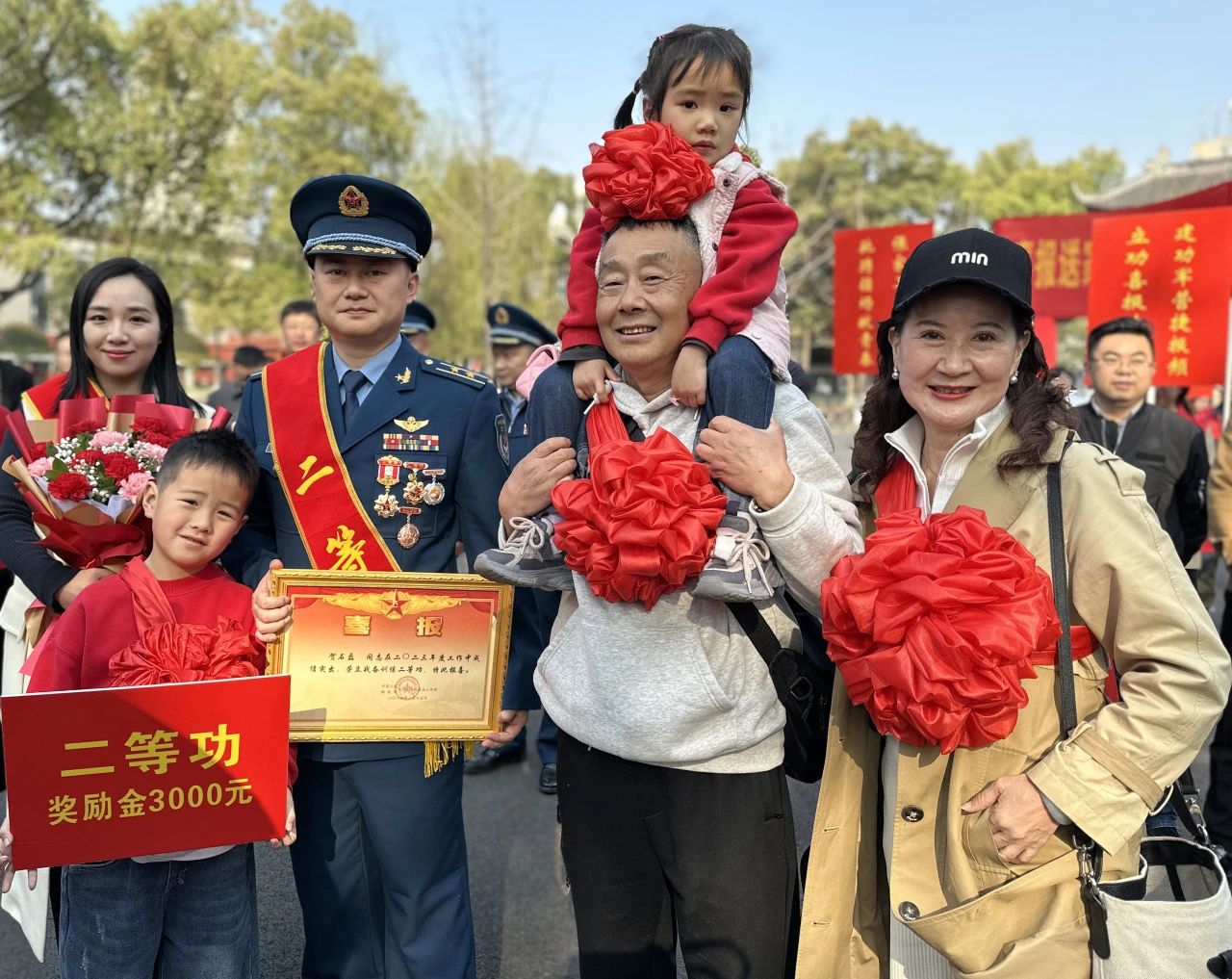 “祝贺贺石磊荣立战备训练二等功!”仪式介绍了贺石磊的先进事迹。2008年6月,贺石磊从四川大学华西公共卫生学院毕业,在空军招飞局成都选拔中心报名参加了招飞选拔,实现了蓝天梦。入伍后凭着对飞行的执着热爱和刻苦钻研,贺石磊的飞行考核排名次次靠前,逐步成长为部队尖刀骨干、优秀飞行员,荣立个人二等功1次、个人三等功2次。