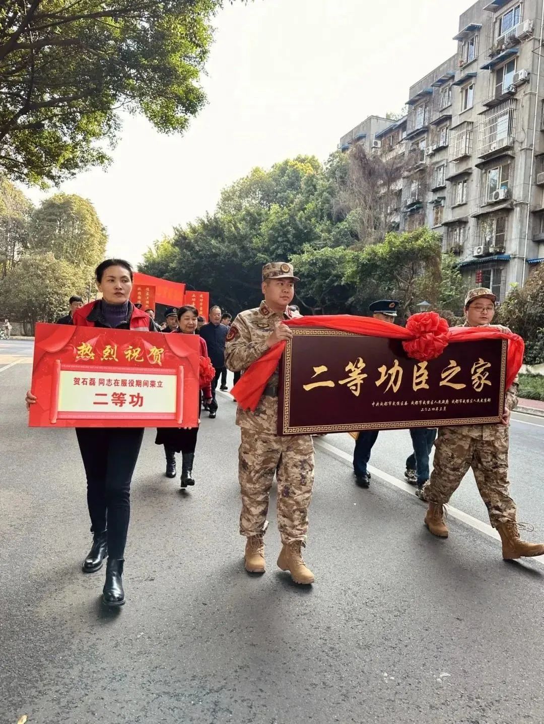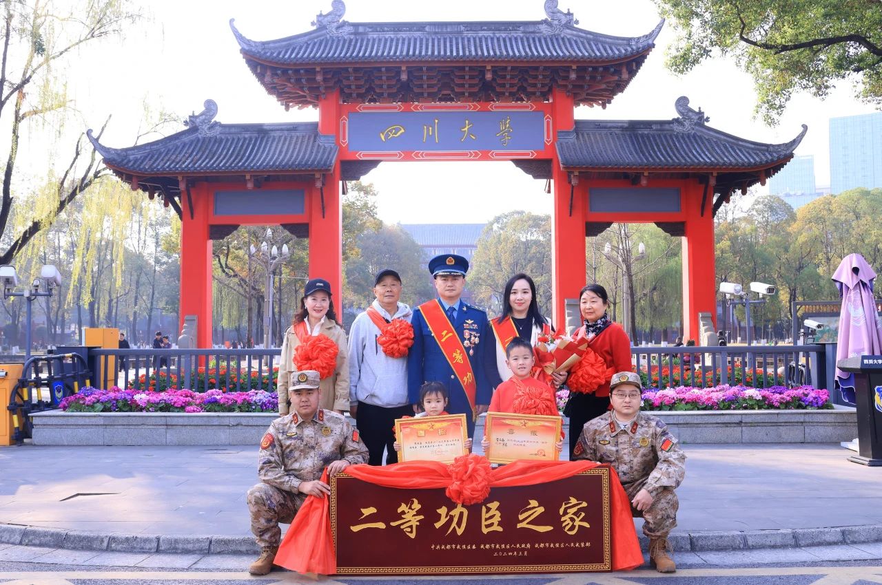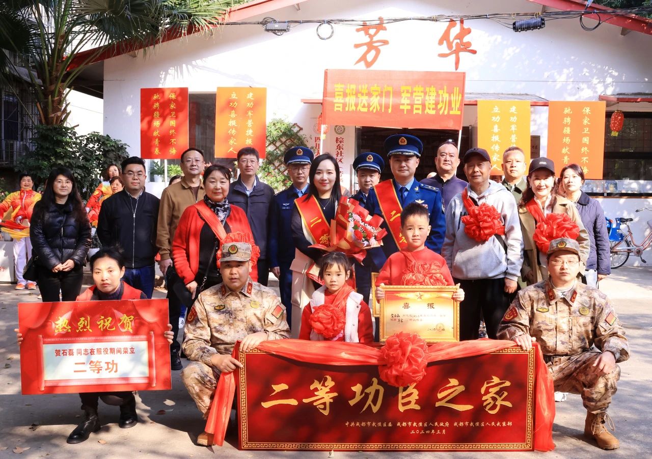 横幅招展,锣鼓喧天。近日,由四川大学、空军某部、空军招飞局成都选拔中心、武侯区人民武装部和区退役军人事务局组成的军地校送喜报队伍,带着“二等功臣之家”牌匾和喜报,来到四川大学校园内贺石磊家中,送喜报现场引发在校师生的阵阵欢呼和拍照留影。