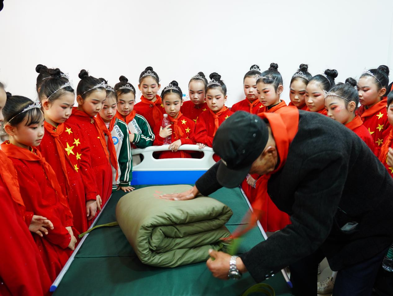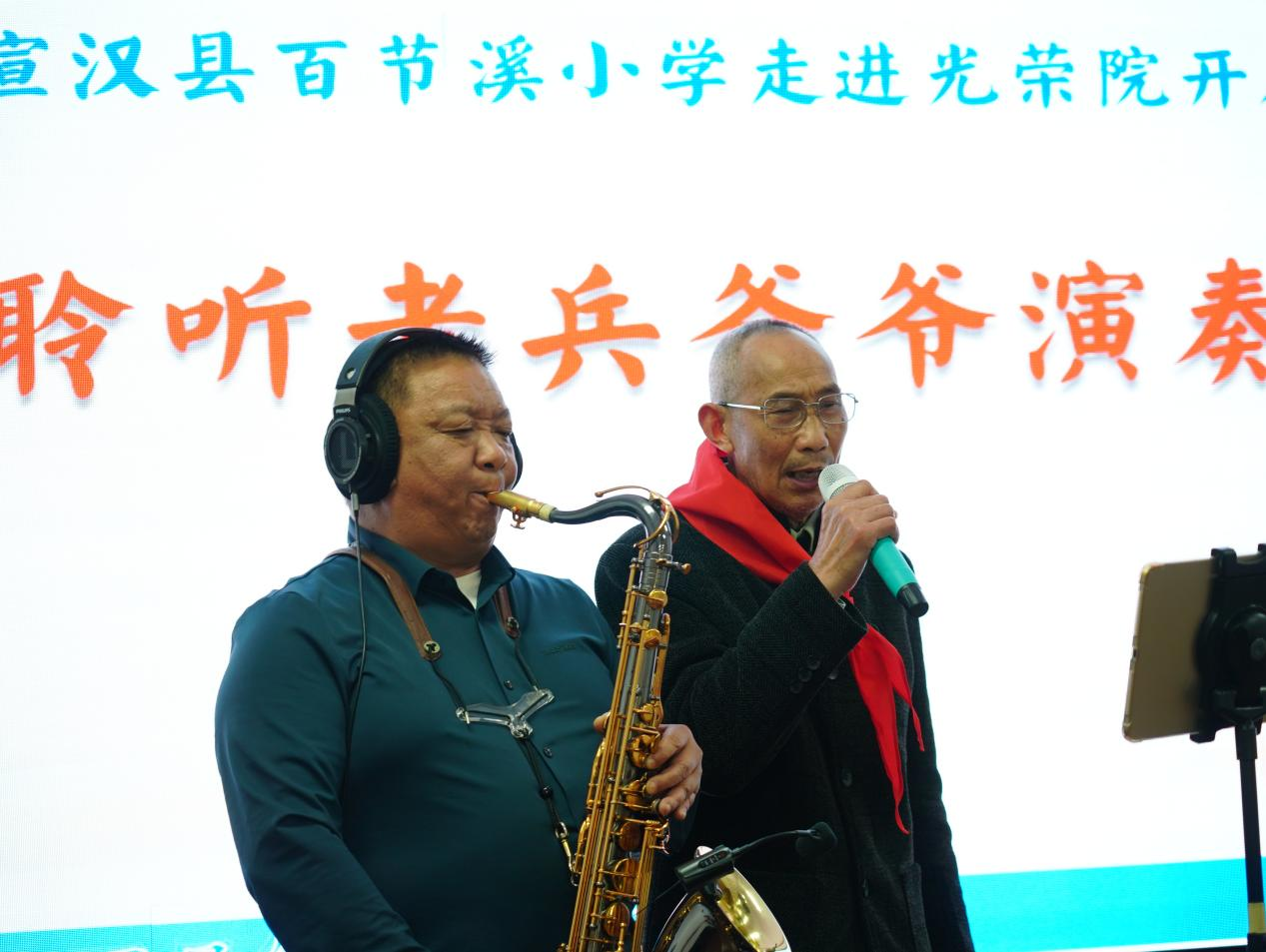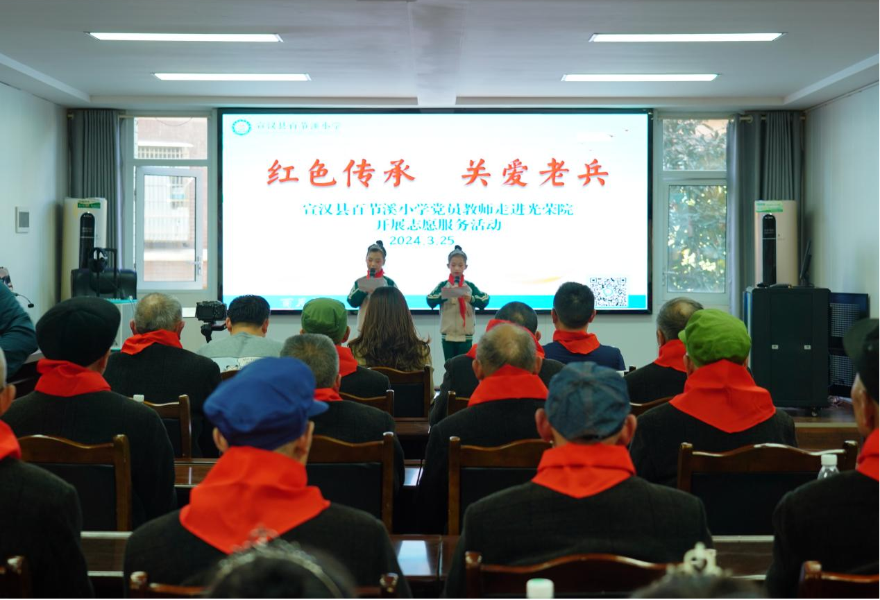 活动中,县光荣院负责人为活动致辞,学校分管德育副校长进行了热情洋溢的讲话;供养老兵为少先队员宣讲红色故事,演奏《我的祖国》《我是一个兵》《我的中国心》等红色歌曲,教少先队员打背包、叠军被,表达对孩子们的关心关爱,激励少先队员爱党爱国、爱军拥军;少先队员为供养老兵佩戴红领巾,表演《我的中国梦》《少年有志》等文艺节目,擦拭桌椅,整理床被,并以新闻播报的形式分享近期国际国内及宣汉当地的新闻事件,让老兵深受感动,脸上洋溢着幸福的笑容。