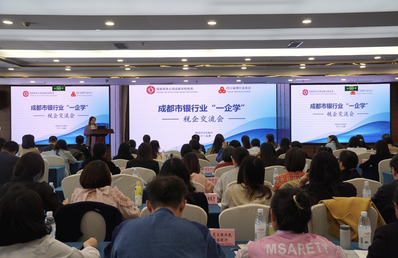 四川发布客户端消息 3月28日下午,国家税务总局成都市税务局联合四川省银行业协会举行成都银行业“一企学”税企交流活动,来自全市国有控股银行、政策性银行、中小型银行、外资银行等70家银行130余名代表参加活动。