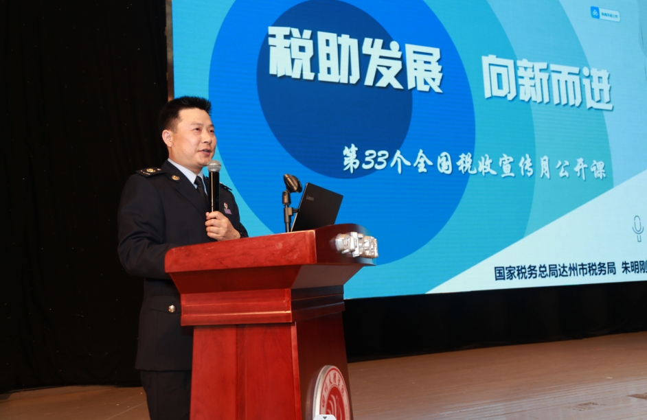 活动中,基地首堂税法宣传课开讲,全国税务系统总局级业务标兵、达州市税务局所得税科副科长朱明刚聚焦个人所得税专项附加扣除和大学生创业优惠政策等热点问题,以典型案例、“你问我答”的形式,为大学生和高校教师们提供了一堂集专业性、趣味性、互动性于一体的特色定制税法课程。