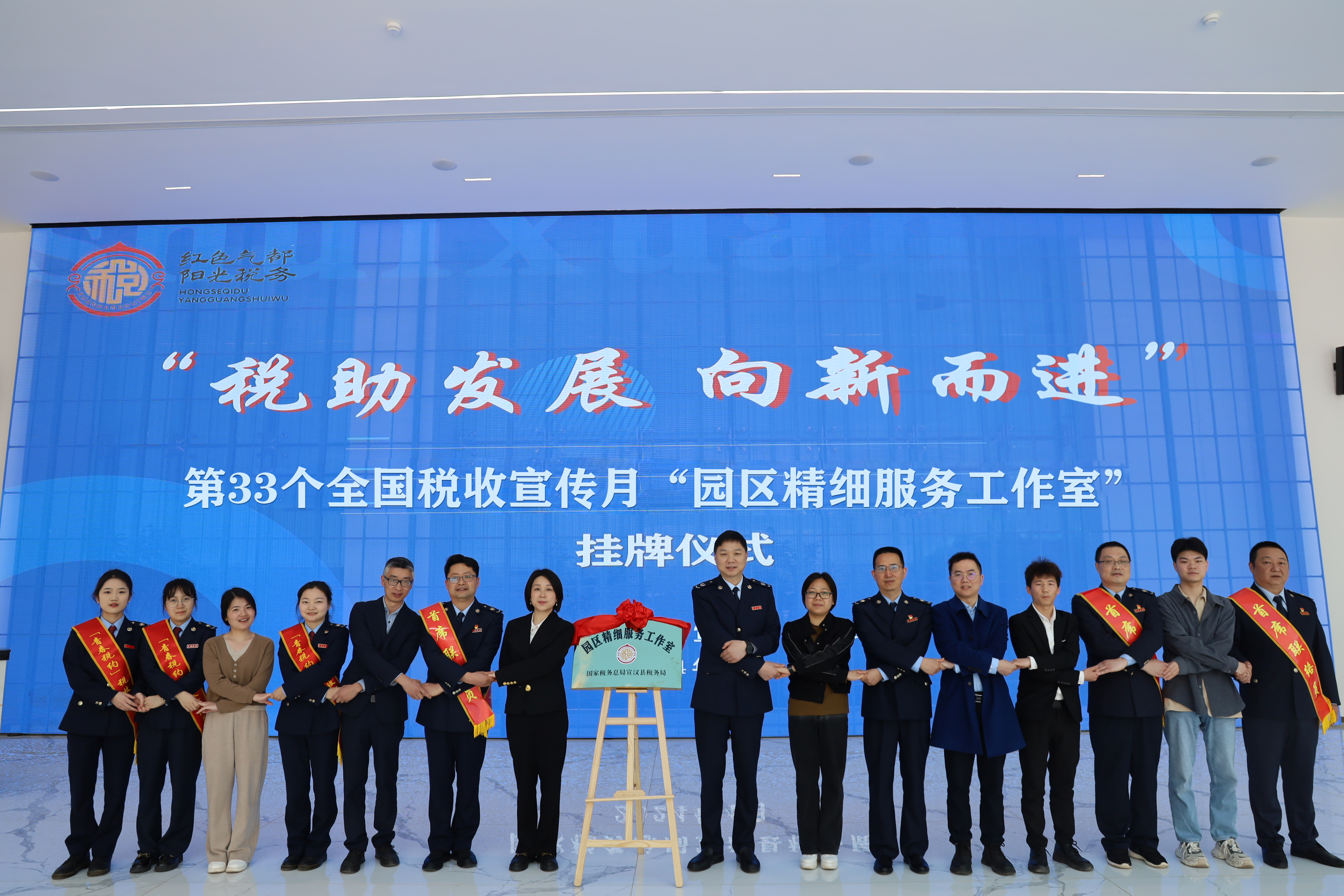 4月8日,国家税务总局宣汉县税务局在普光工业园区成功举办“园区精细服务工作室”挂牌仪式。30名首席联络员正式上岗,拉开宣汉县税务局第11个便民春风行动和第33个税收宣传月序幕。