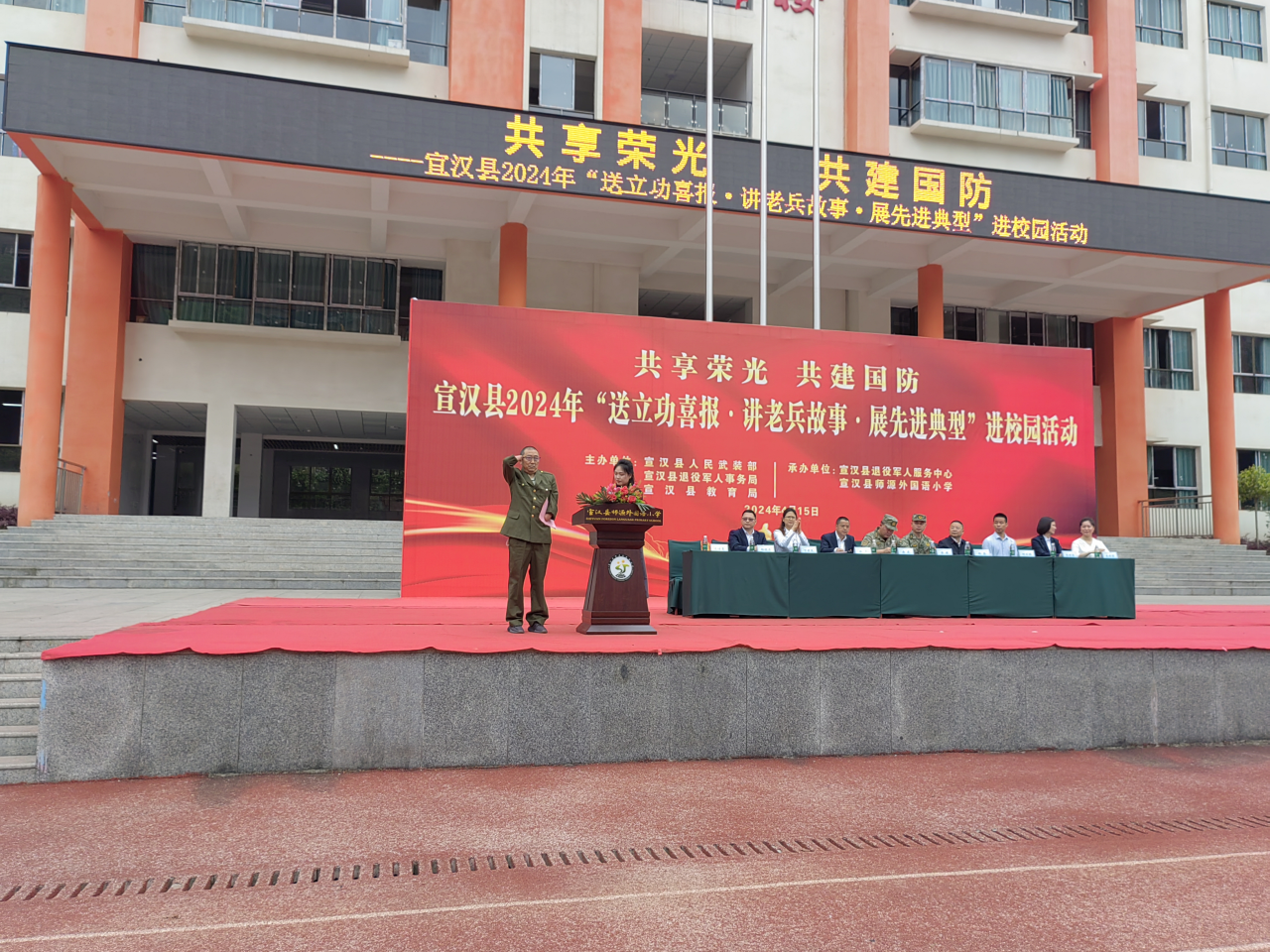 此次活动以“共享荣光 共建国防”为主题,由宣汉县人武部、宣汉县退役军人事务局、宣汉县教育局主办,宣汉县退役军人服务中心、宣汉县师源外国语小学承办,旨在深入贯彻落实习近平强军思想和习近平总书记关于双拥工作重要论述,全面加强国防教育,讲好红色故事,传承红色基因,赓续红色血脉,厚植家国情怀,营造尊军崇军的浓厚氛围。