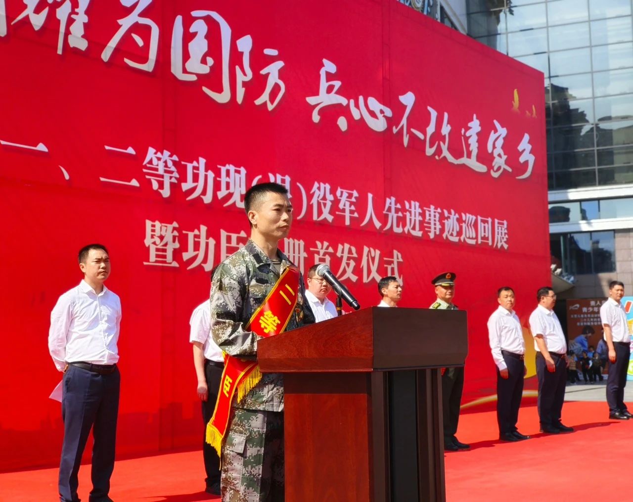 驾驶坦克完成270°漂移精准入库登上央视“挑战不可能”节目,抗震救灾活动中抢救物资、运送伤员……5月22日,达州市宣汉县以“军功闪耀为国防·兵心不改建家乡”为主题,举办一、二等功现(退)役军人先进事迹巡回展暨功臣画册首发仪式,旨在加强退役军人思想政治教育,发挥功臣模范和优秀退役军人的引领示范作用,用现(退)役军人事迹教育人、激励人,引导广大退役军人始终“听党话、感党恩、跟党走”,推动退役军人学有榜样、赶有目标。