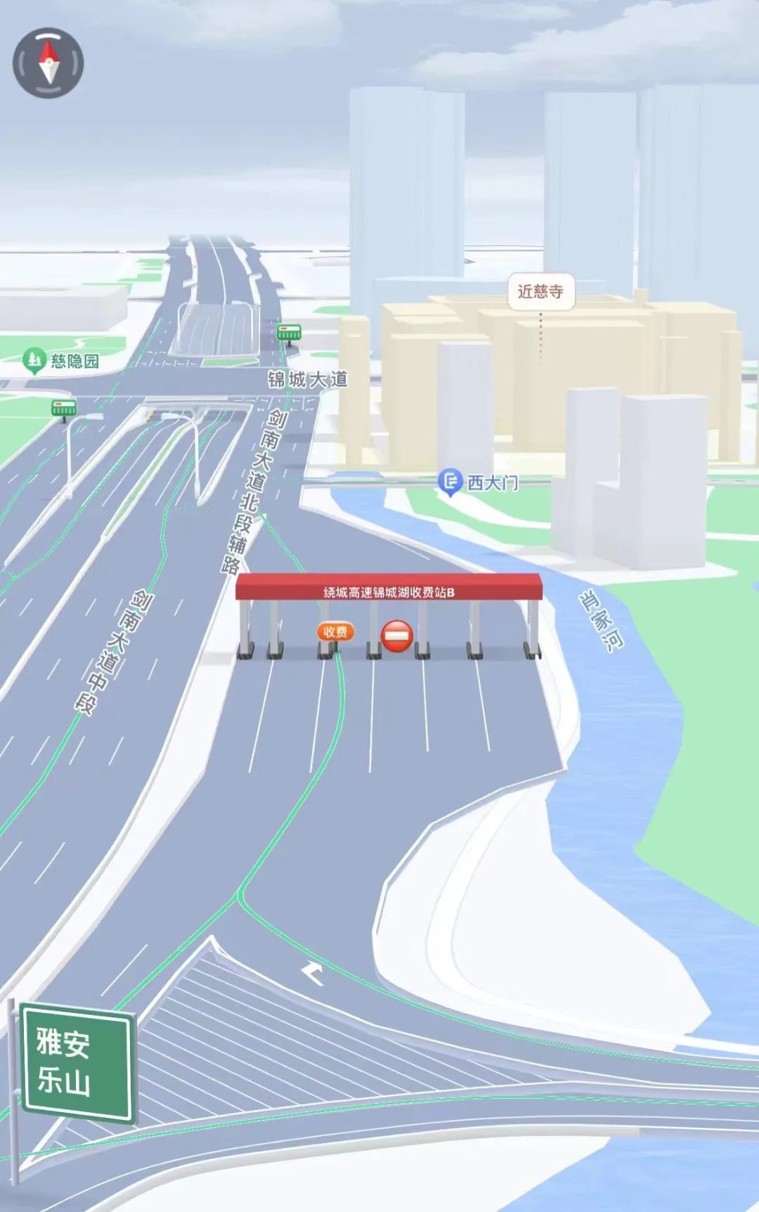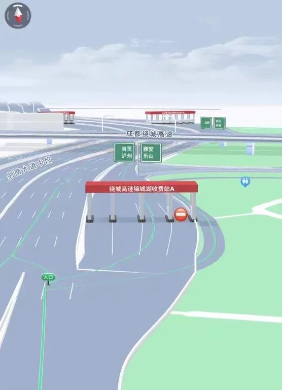 1. 由锦城湖A站入口前往绕城高速的车辆,请提前选择第1车道(ETC专用)、第2车道(ETC专用)、第3车道(ETC/人工混合)进入收费站。