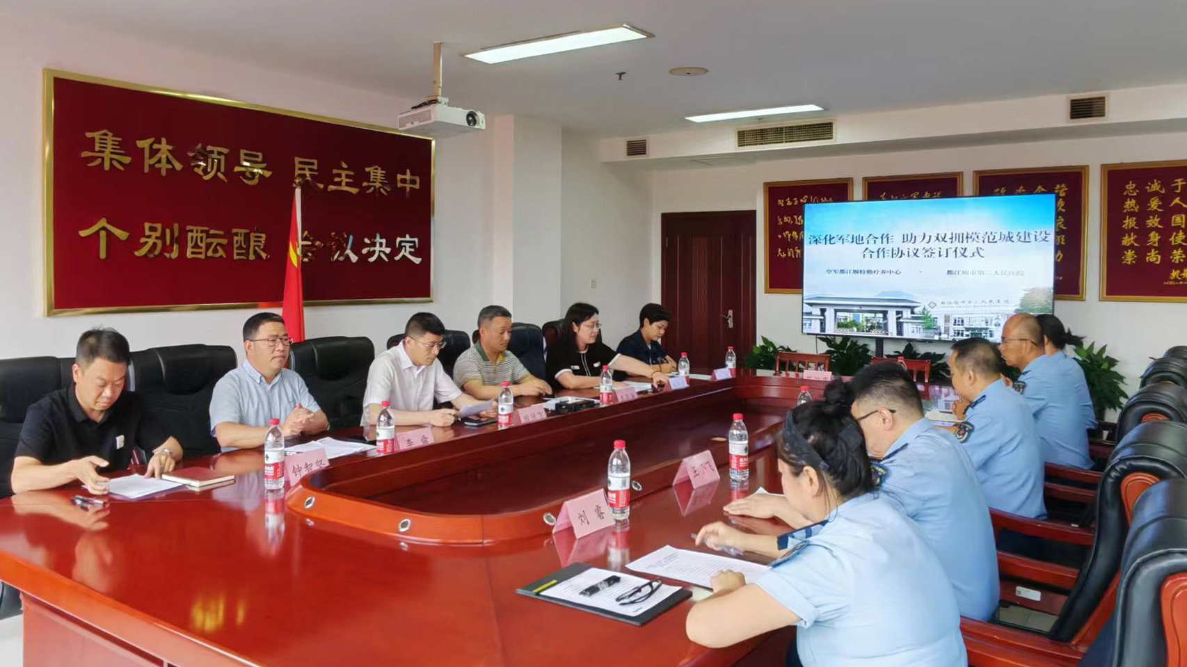 近日,都江堰市第三人民医院与驻都江堰市某部队举行共建心理健康中心签约仪式。共建双方互相交流了各自单位建设发展情况,围绕人才培养、巡诊义诊、科研创新、资源共享等方面就如何高效开展双拥共建做了深入交流和探讨。双方达成共识,将联合探索实施现役及退役军人子女建立心理健康档案,开展系统、动态的心理健康管理和干预工作;针对军休干部心理健康,开展军休干部心理问题早期介入,总结有效防范方法举措。