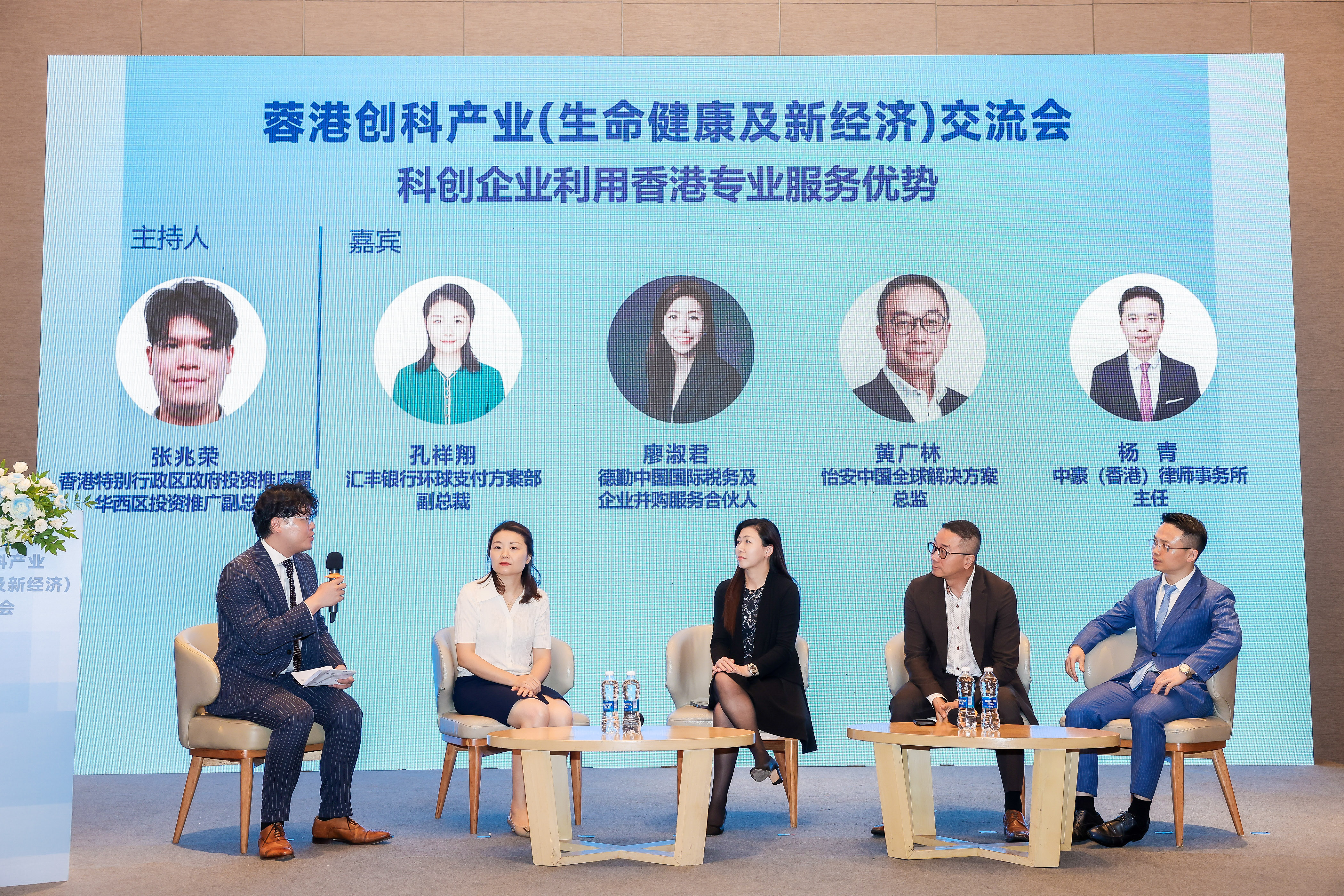 随后,来自香港交易所、汇丰银行、德勤等机构的专家分别从香港营商优势、企业跨境资金管理等领域进行主题分享,并和企业代表开展沙龙对话,共同探索行业发展。香港浸会大学代表向来宾介绍香港高校在科研成果转化方面的实例,推行产学研1+计划;驻成都经贸办入境事务组总入境事务主任余宗培现场讲解针对内地居民赴港工作签证类型及其他入境计划,以及可提供的服务支持。