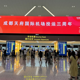 成都是继北京、上海后,中国内地第三个同步运营双国际机场的城市。2023年,天府国际机场年旅客吞吐量实现千万级的“三连跳”──突破4000万人次,迈入全球繁忙机场行列。