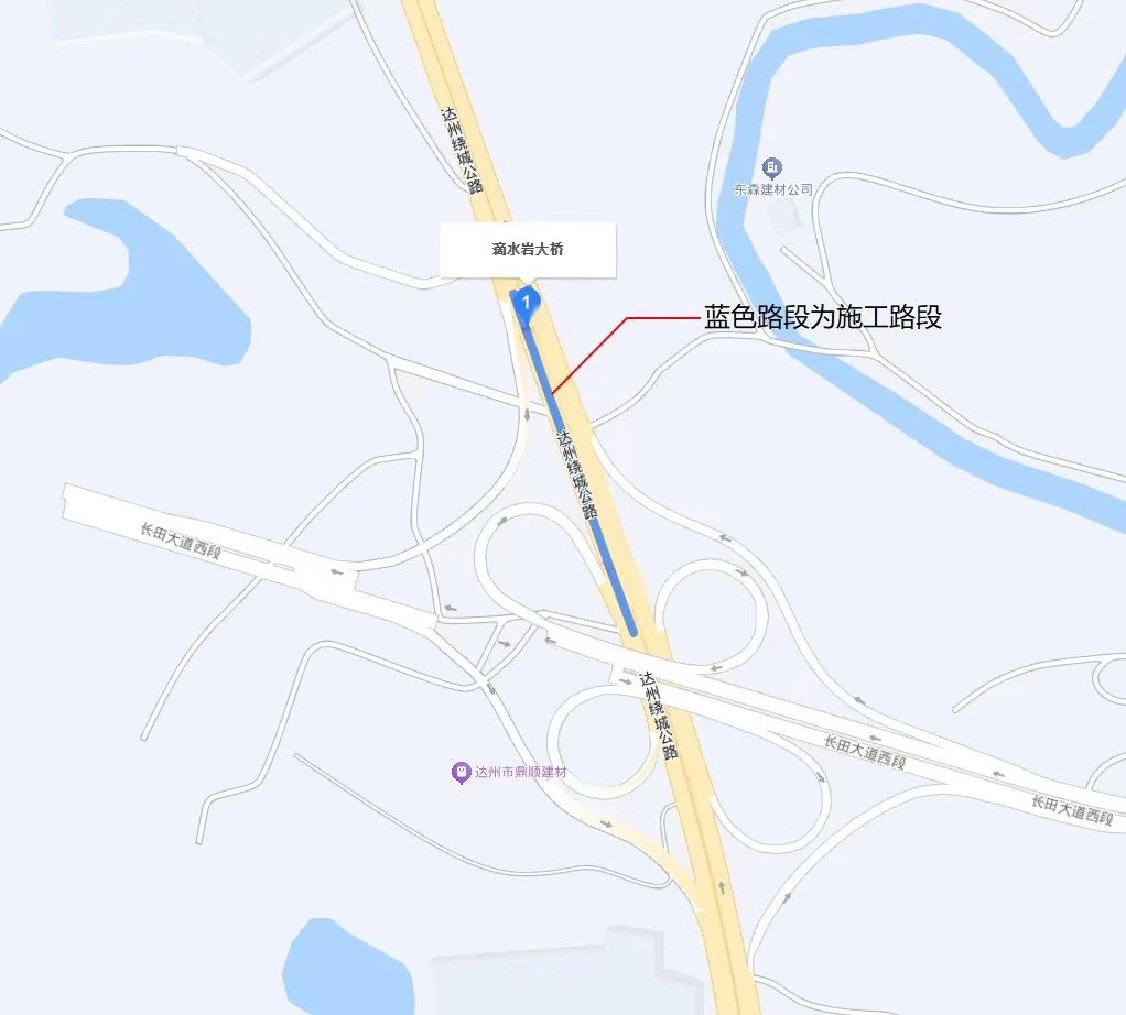 对达州绕城公路魏复路匝道至袁家坪路段(K1900+707—K1897+507)实施半幅交替占道施工。