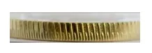 硬币外缘分布有交替排列的斜全齿与半齿。防伪特征效果如下: