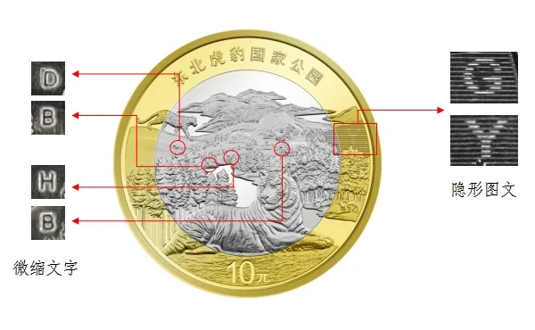 东北虎豹国家公园双色铜合金纪念币公众防伪特征整体效果如下: