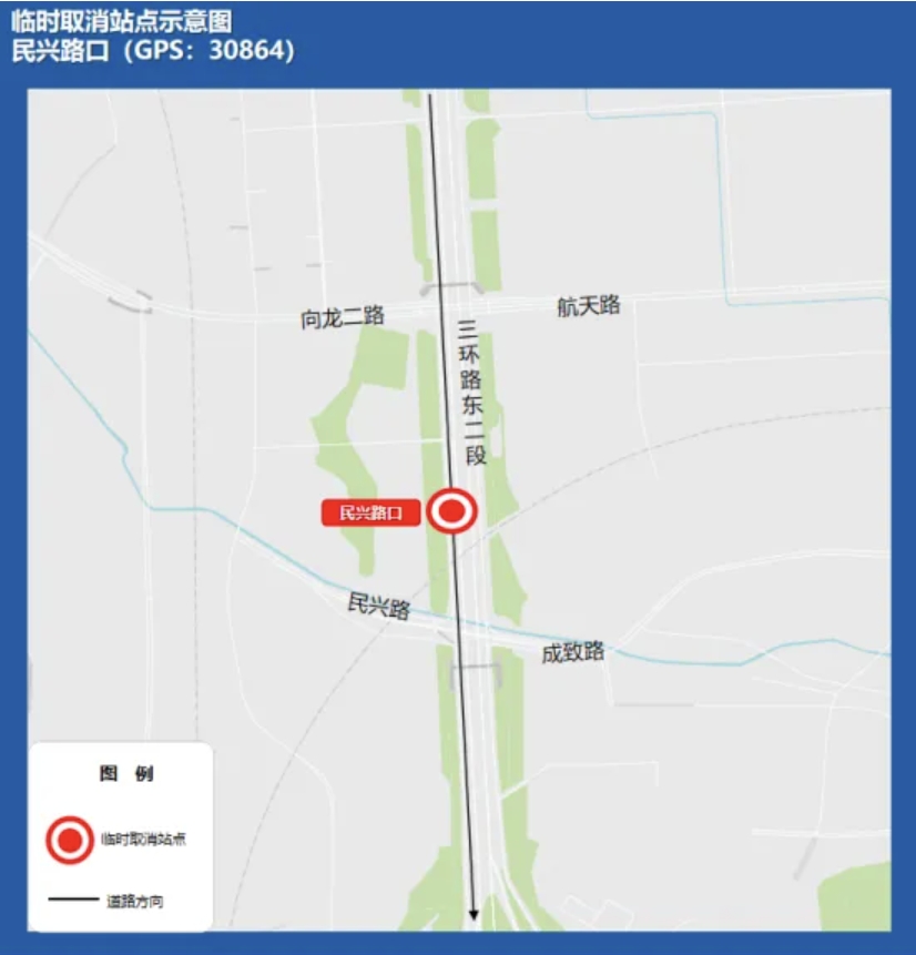 站点设置:8月30日至9月29日、10月26日至10月28日、12月9日至12月17日每日22:00至次日6:00临时取消“民兴路口”(30864)。