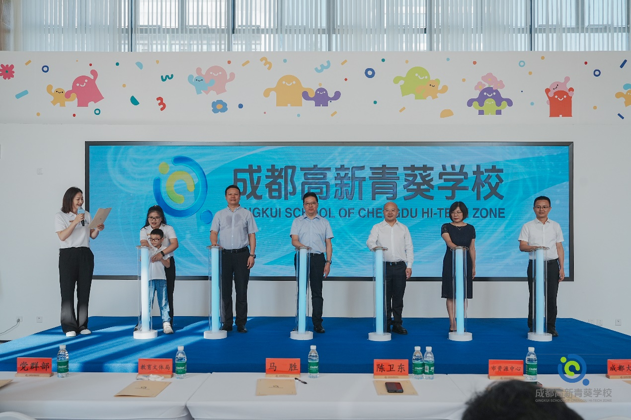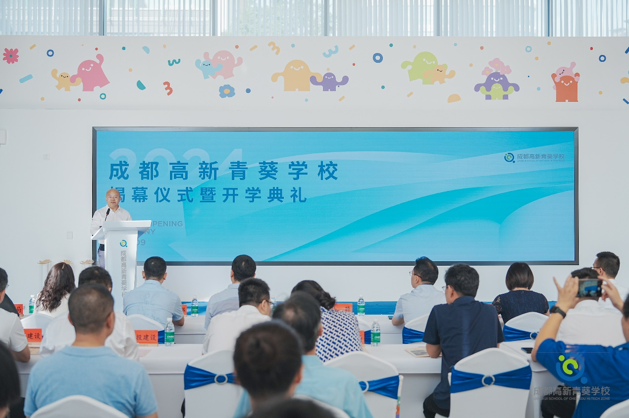 在典礼仪式上,成都大学党委常委、副校长马胜发表致辞并对学校的正式开校表示祝贺,他说:“成都大学作为青葵学校的领办单位,十分重视此项工作,选派了两位海外高层次人才、特殊教育博士、副教授领衔办学管理执行团队,从学校规划开始到建设完成,至始至终参与其中,确保了学校如期顺利开学。希望管理执行团队认真践行教育家精神,主动担当、全力以赴,用好大学资源、发挥专业优势,力争把青葵学校办成一所国内领先、国际一流的特殊教育学校,助力每位孩子都能像园中青葵一样向阳生长,活出自己的精彩。”