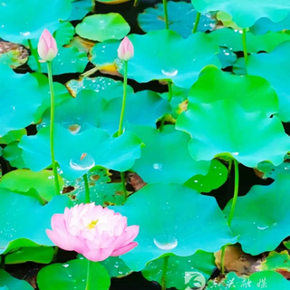 此时的荷塘,碧绿的荷叶挨挨挤挤,铺满了湖面。一片片硕大的荷叶似擎起的伞,在风中摇曳,在雨中飘摇。朵朵娇粉欲滴的荷花在微雨中翩然起舞,有的含苞待放,有的破蕾盛开,有的落花为蓬,各有各的姿色,各有各的风韵。