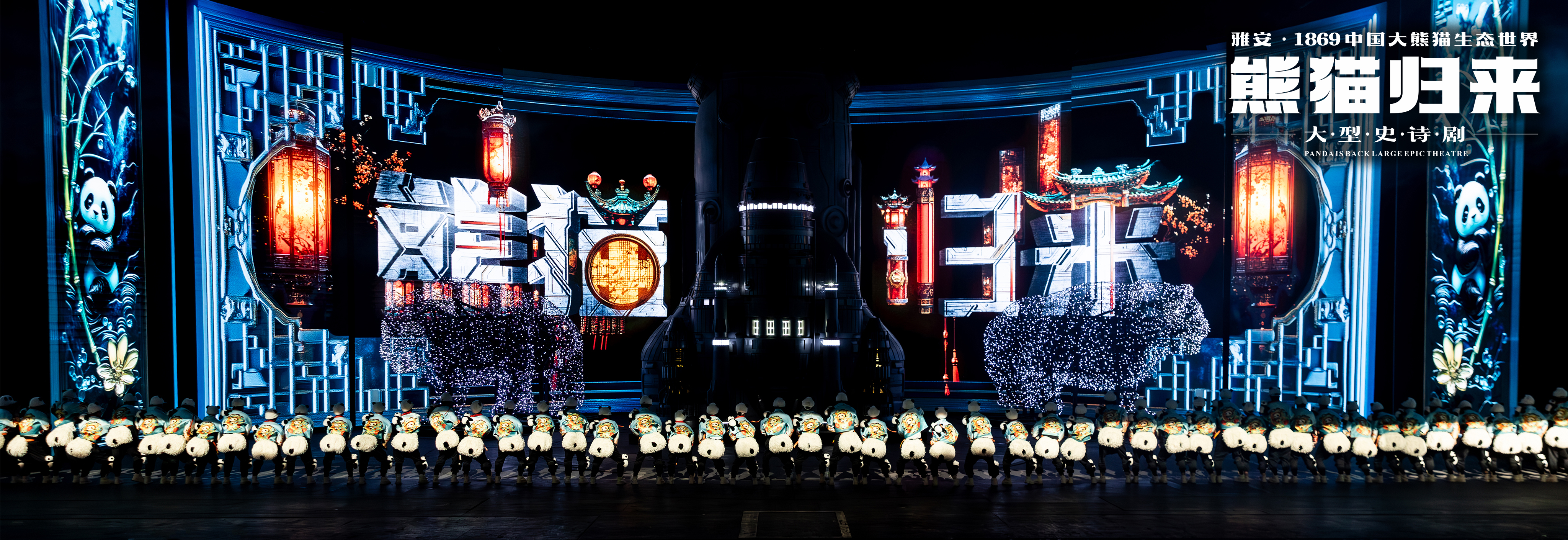 《熊猫归来》大型旅游演艺由雅安文旅集团联合域上和美集团打造,由极具创新精神的导演刘方祺执导,他曾成功打造《三体》舞台剧和《亚丁·藏地密码》等知名作品。《熊猫归来》剧情设定在第四纪冰河时代,动物世界因食物匮乏面临大灭绝危机,一位神秘主人公乘坐时空穿梭飞行器来到1869年的雅安,展开关乎大熊猫生存与归乡的冒险旅程。据介绍,《熊猫归来》打破传统剧场观演模式,复配“1+1”的超大型熊猫主题光影空间+全沉浸巨幕观众席坐观剧场,顶尖的舞美设备和多元自然特效,1500平熊猫光影空间里,30台3万流明激光机、10倍IMAX巨幕,2800㎡升降魔幻舞台,让1869演艺中心成为名副其实的沉浸式剧场。市民吴女士充满期待:“好莱坞‘功夫熊猫’形象已深入人心,我们更希望看到一个中国人自己的大熊猫英雄。”