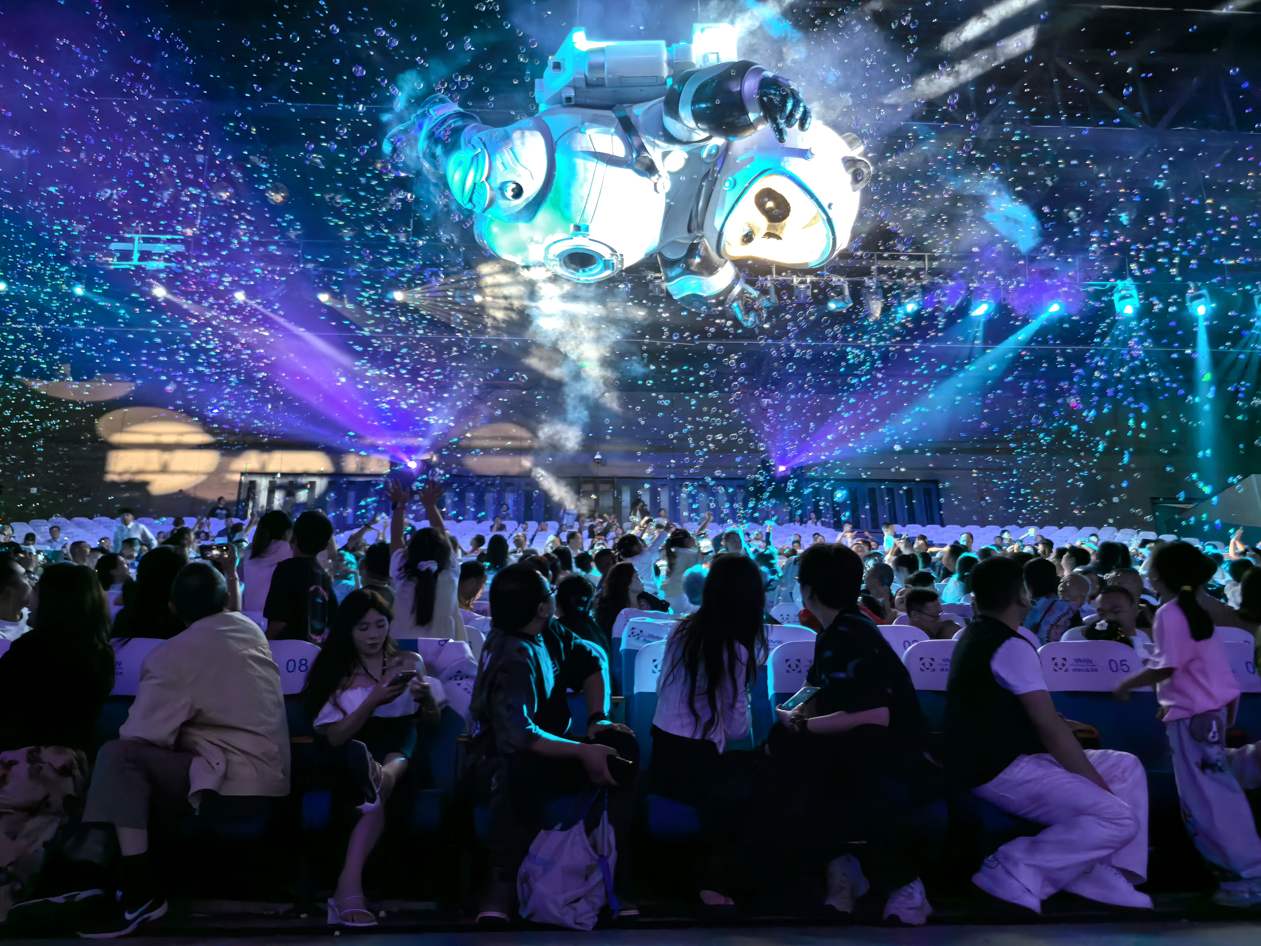 今年“五一”假期,《熊猫归来》在雅安连演10场,场场爆满,成为成都周边炙手可热的亲子游项目。5月2日更是安排了三场连映的“加量狂欢”,满足游客高涨的观演需求。平均上座率超90% ,印证了这部剧目的市场号召力。游客周女士在观演时不断用手机记录精彩瞬间:“演出从全新的角度介绍大熊猫文化,没想到大熊猫穿着宇航服出现在我们面前,我感受到科普与科幻的完美结合。”