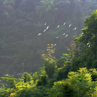 水清岸绿、鸟群展翅、游人信步