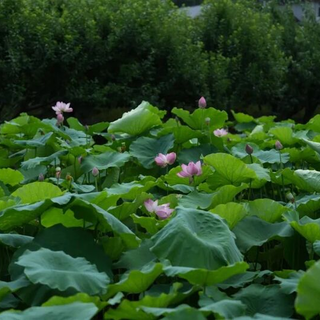 摇曳的荷叶挤满了整个池塘