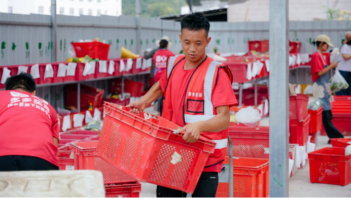 负责站内分拣的10多名分拣员,基本都是本地宝妈。多多买菜让这些因照顾孩子一度放弃工作机会、缺少收入来源的“全职妈妈”,重新收获了稳定的生活保障和自我价值满足。