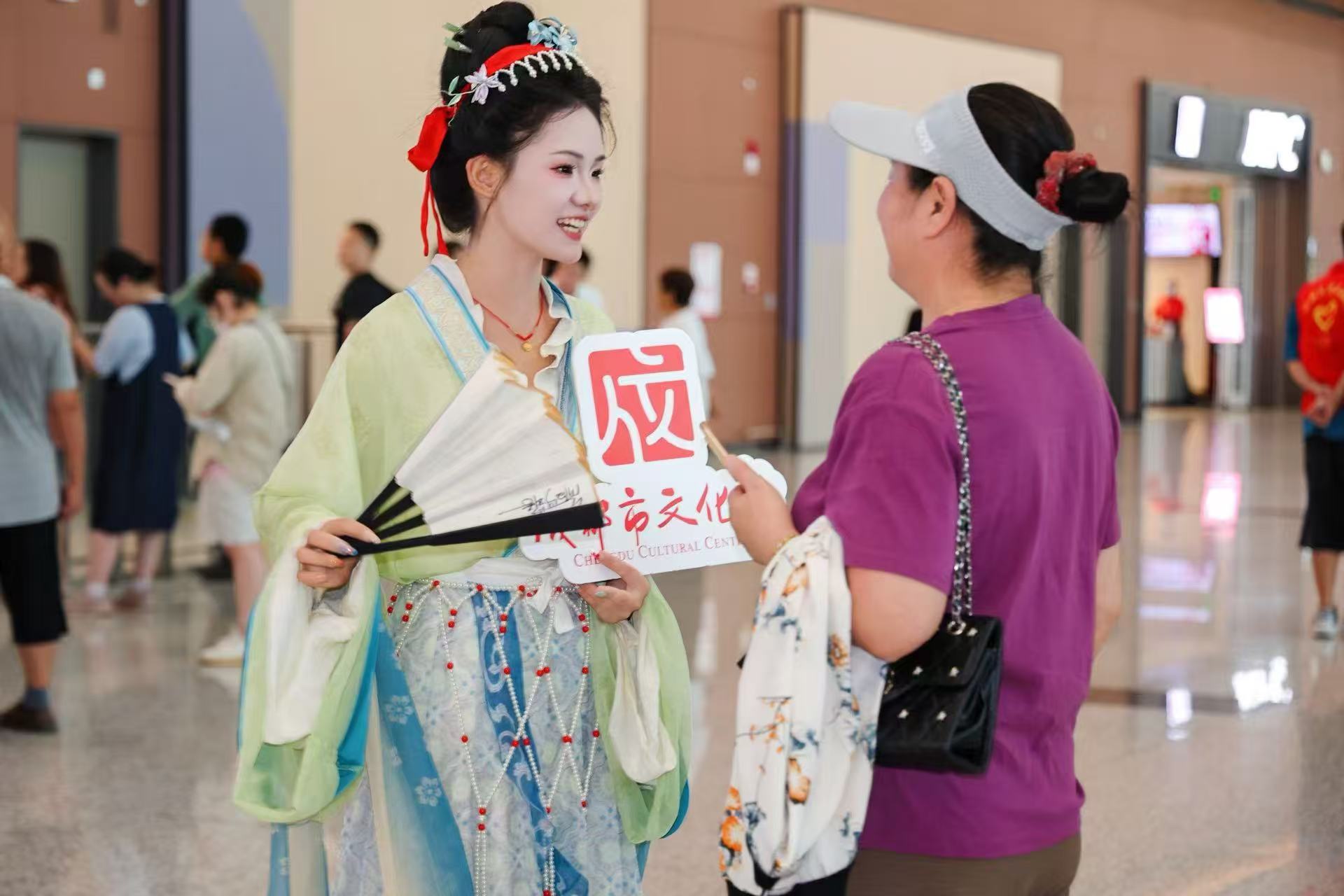 四川发布客户端消息 8月29日,由成都市文化馆主办的“你好成都・杏好遇见你”──2025“我们的节日・七夕”群众文化志愿服务活动在成都天府国际机场上演。