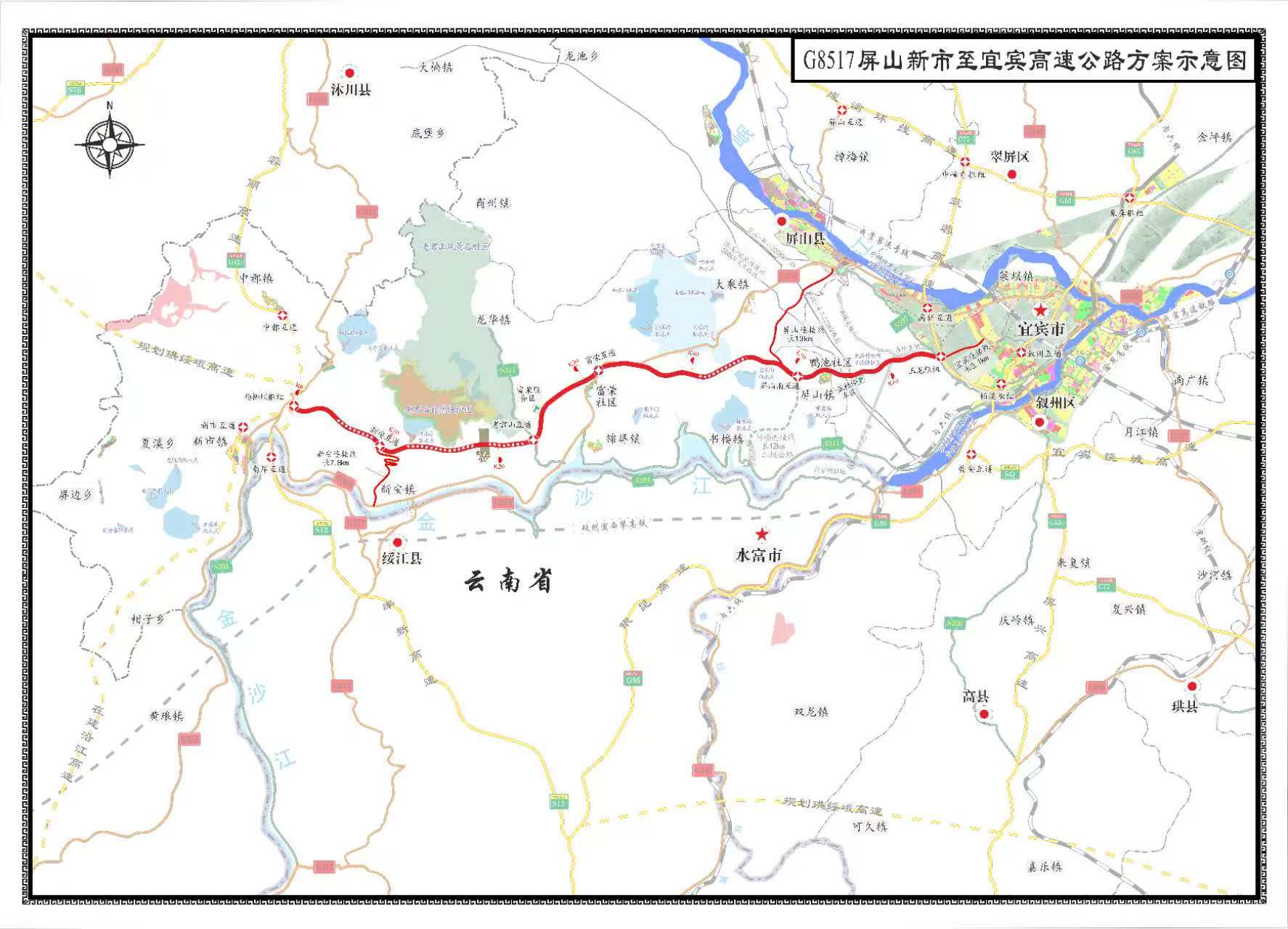 作为《国家公路网规划(2022—2035年)》中G8517屏山-兴义高速公路的重要组成路段,新宜高速被列入国家“十四五”规划102项重大工程之一,衔接G85银昆高速、G4216蓉丽高速、G7512筑蓉高速三条国家高速公路。