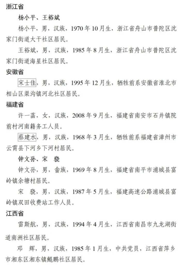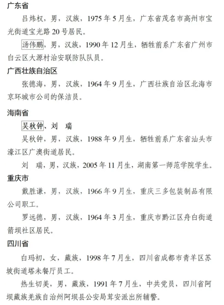 共有69位见义勇为勇士光荣上榜
