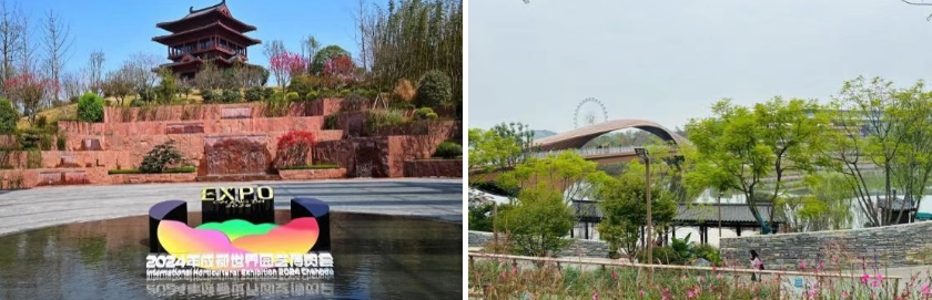 2024年成都世界园艺博览会(左)、现免费开放的成都世界园艺博览园(右)