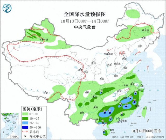 受冷空气影响,13日至14日,新疆北部和沿天山地区、甘肃西部、青海东部和南部等地有小到中雪或雨夹雪、局地大雪。14日夜间起,新疆北部和东部、甘肃西部、内蒙古西部等地将有大风降温天气,气温先后下降4℃至8℃,局地降幅可达10℃以上,请及时增添衣物。