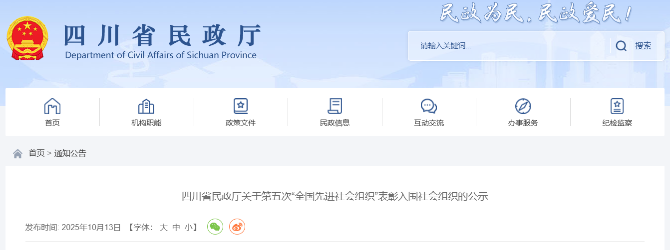 四川发布客户端消息 今日,四川省民政厅公示第五次“全国先进社会组织”表彰—四川省入围名单,公示期为5个工作日。