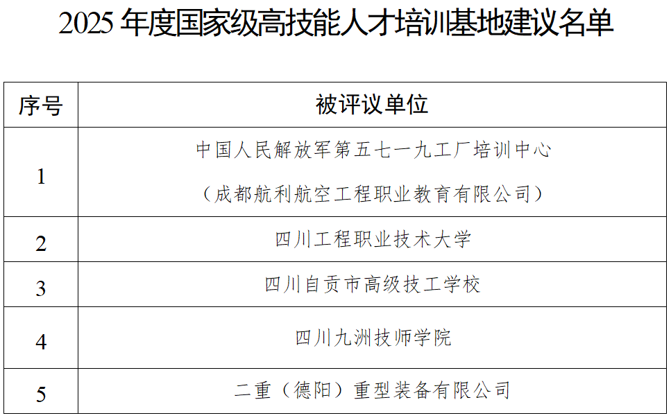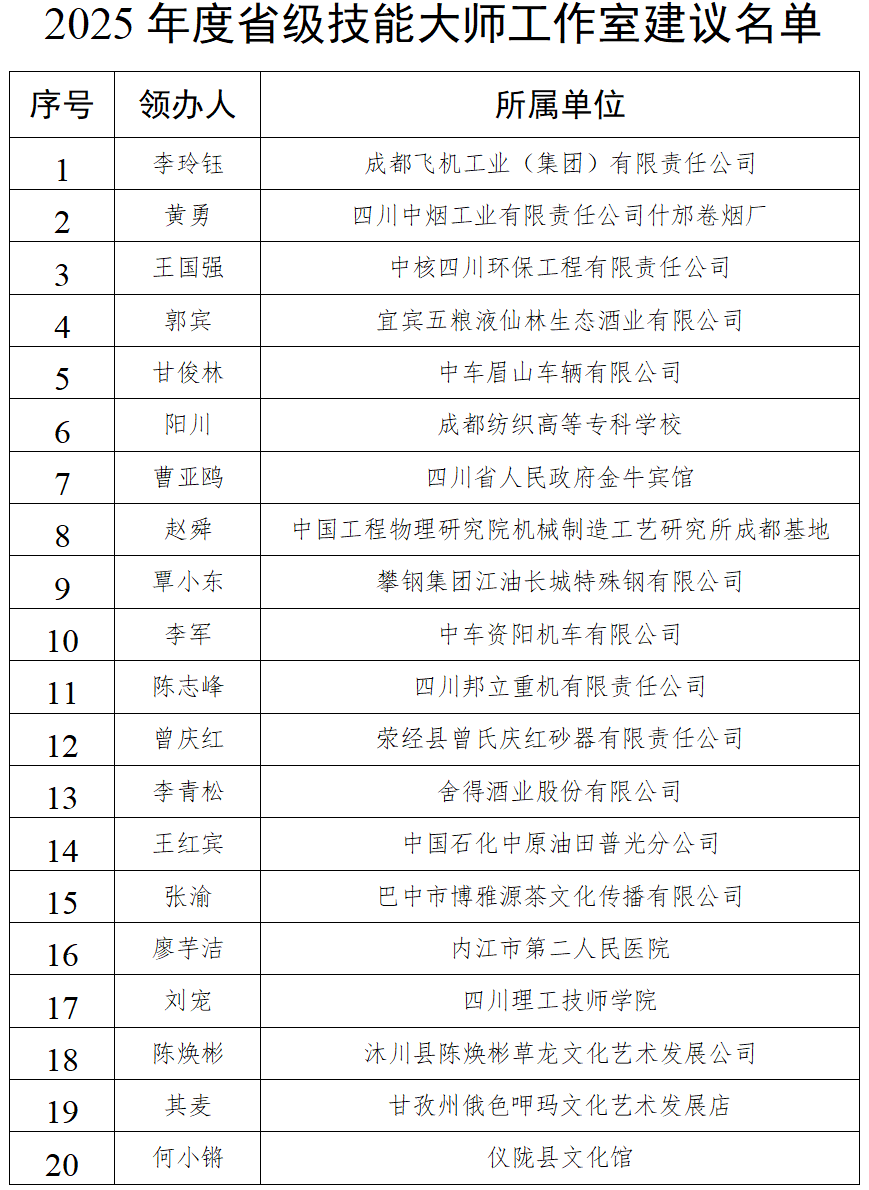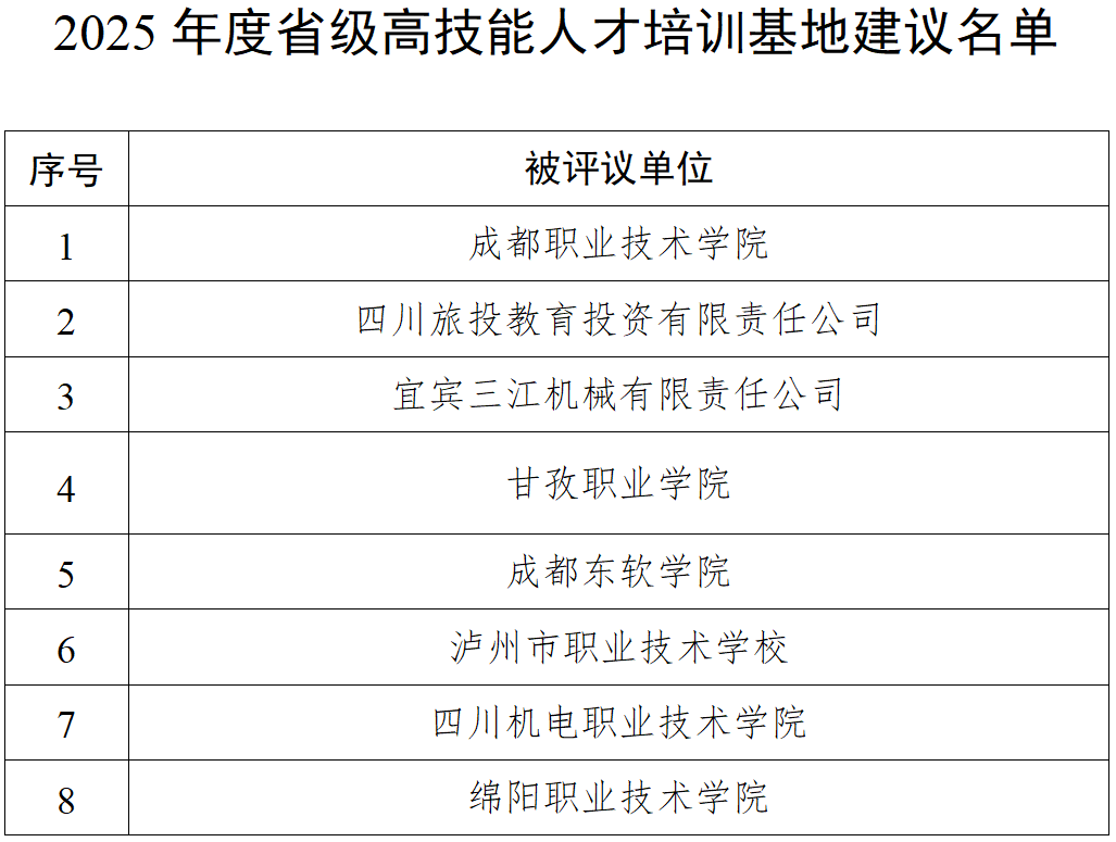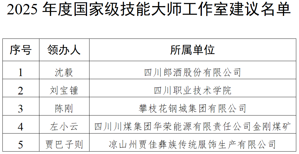 日前,四川省人力资源和社会保障厅公示2025年度国家级、省级高技能人才培训基地和技能大师工作室建议名单,自2025年10月17日至2025年10月23日公示。
