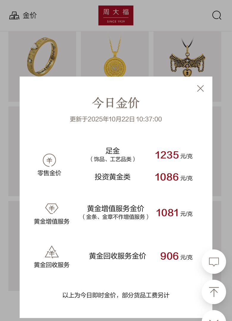 此外,记者注意到,随着国际金价的变动,国内金饰价格也受到影响。记者走访了成都部分金饰品牌店,周生生品牌金饰价格今日跌到1250元/克,相较前一日的1289元/克,一夜跌去39元/克。而周大福今日报价1235元/克,较昨日1292元/克更是跌去57元/克。老庙黄金金饰价格21日上涨至1294元/克,22日下跌至1211元/克,单日下调83元。老凤祥报1229元/克,较前一日下跌61元/克;六福、潮宏基、周大生报1235元/克,较前一日也下跌57元/克。