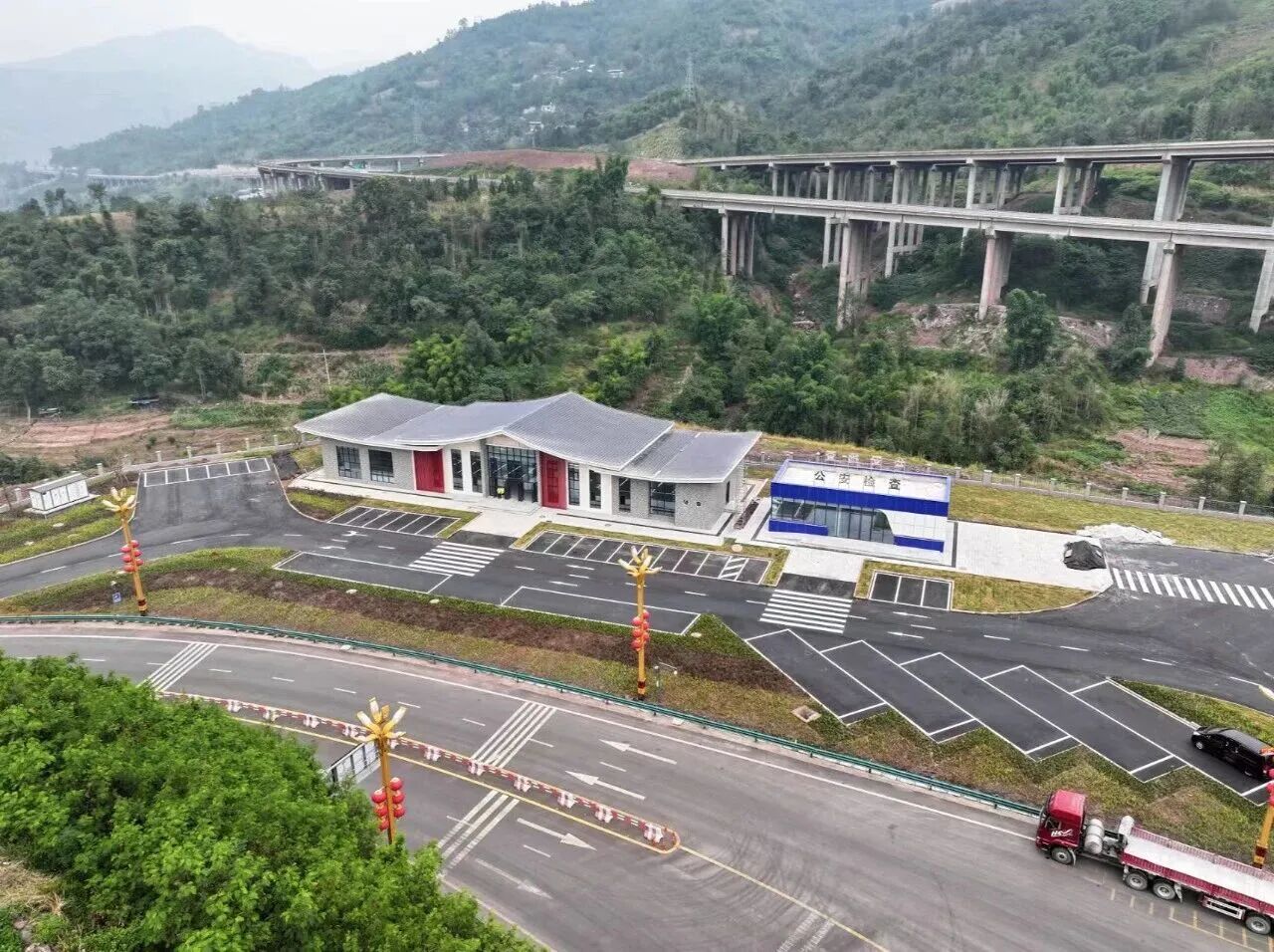 红牌坊服务区位于马边彝族自治县仁沐新高速马边支线出口,毗邻国道348线、省道311线,交通便捷。服务区环境整洁美观,设46个停车泊位、12个新能源充电车位,配套平价餐饮、洁净公厕、洗衣淋浴、专业安保及党群服务、公安检查等功能,保障出行便利安全。更有本地特色农产品展示区,既助力地方农特产品推广,又丰富服务区便民场景,彰显民族地区服务枢纽价值。