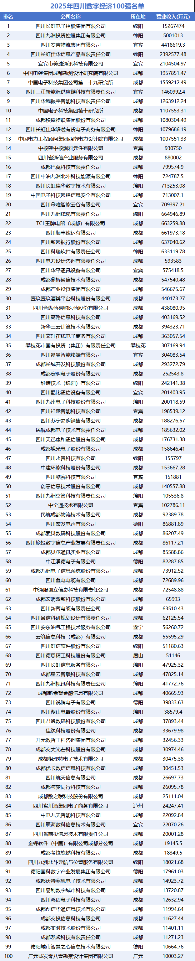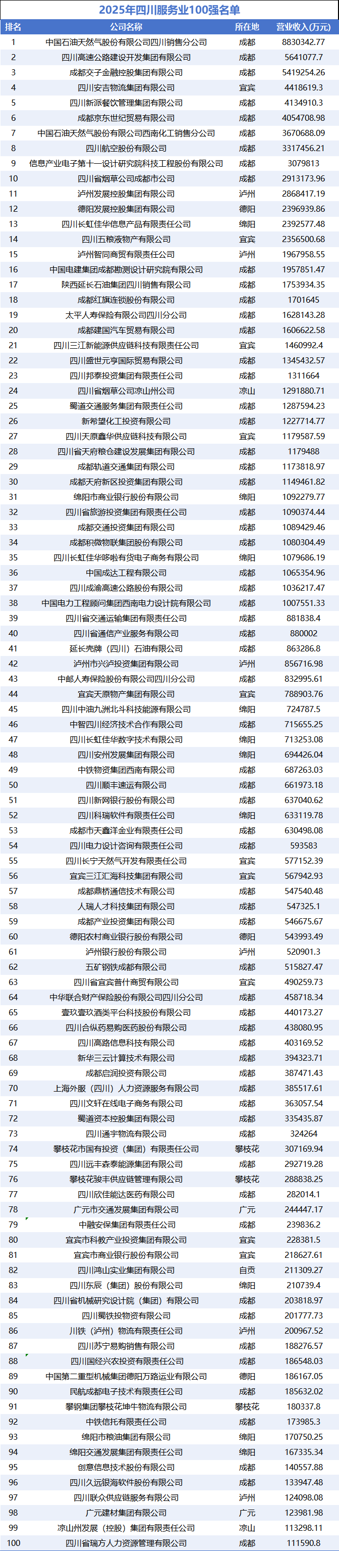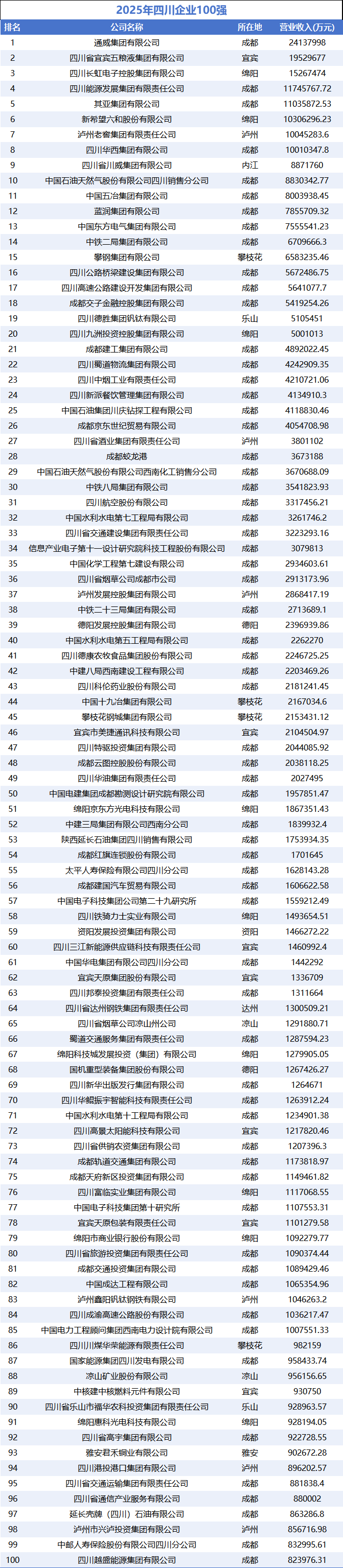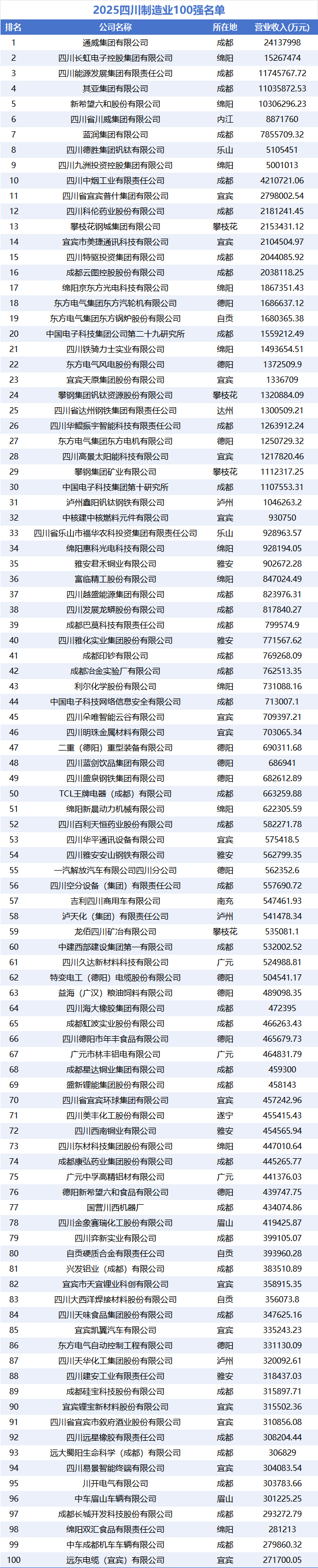 2025年,四川企业100强入围门槛达82.40亿元,较上年增长8.53%。制造业企业100强入围门槛为27.17亿元,较上年增长0.48亿元,四川企业100强和制造业100强入围门槛已连续六年保持增长态势;服务业企业100强入围门槛达11.16亿元,同比增长30.15%;数字经济企业100强入围门槛首次突破1亿元。