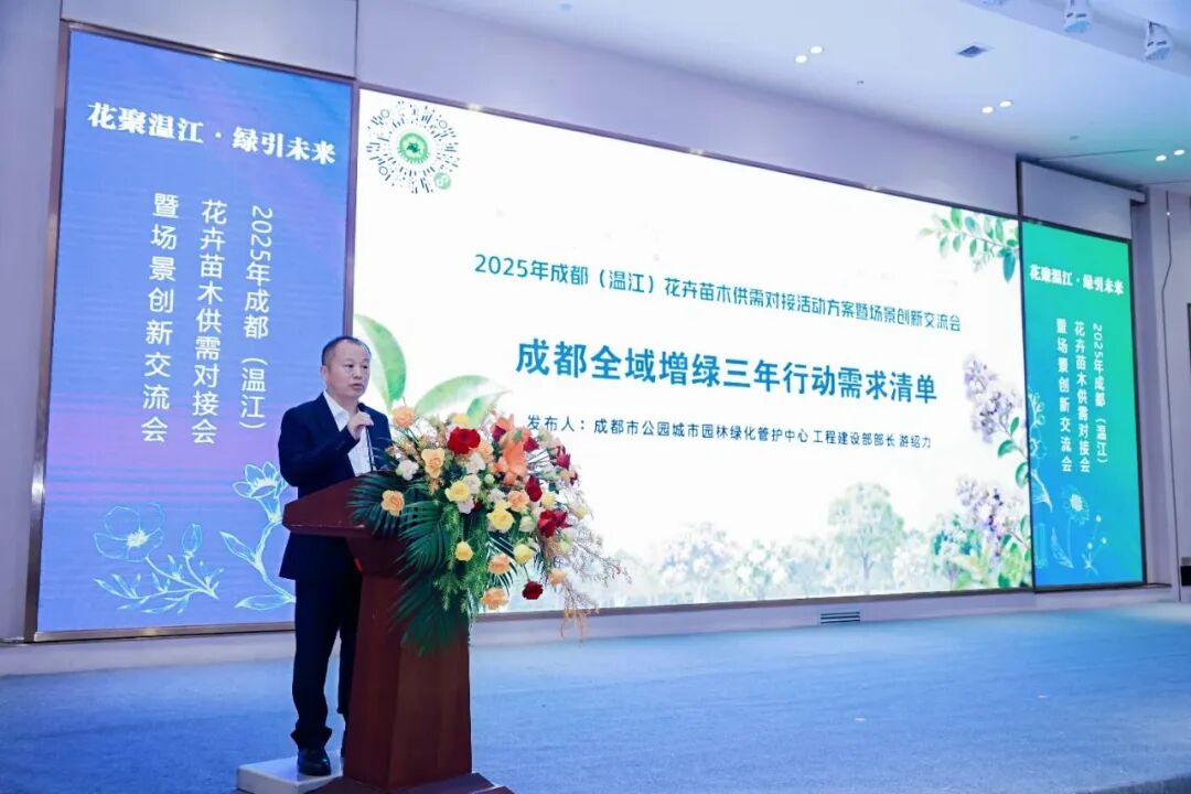 四川发布客户端消息 近日,由成都市公园城市建设管理局主办,以“花聚温江·绿引未来”为主题的2025年成都(温江)花卉苗木供需对接会暨“场景创新·机会无限”交流会在成都市温江区举办。来自四川、重庆、广西、云南等地的林业种苗站、协会代表、行业专家、企业负责人约200人共聚一堂,共谋花卉园艺产业高质量发展新路径。