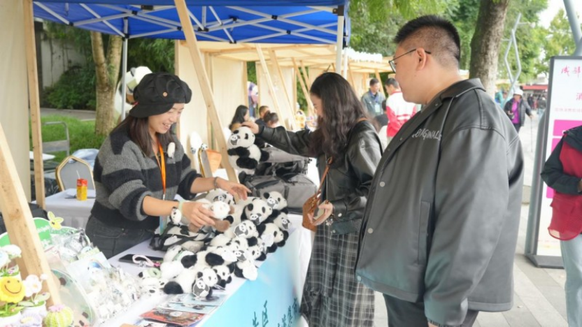 憨态可掬的熊猫陶俑、编织精巧的熊猫挂件……该集市选址于客流量密集的成都大熊猫繁育研究基地南门,有效借助了景区假日客流优势,为残疾人文创产品提供了广阔的展示平台。此次展出的展品中,残疾工匠们将大熊猫文化元素与本地传统工艺相结合,创作出涵盖陶艺、编织、绘画、布艺等多个门类的文创作品,受到游客青睐。