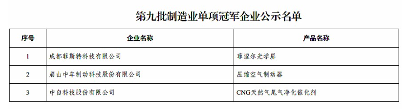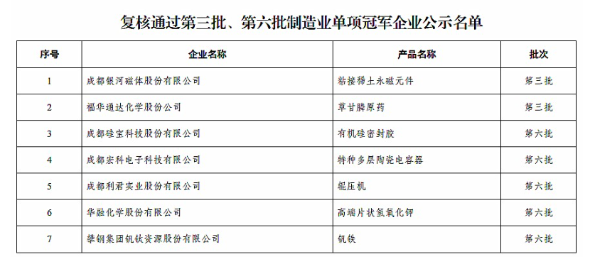 四川发布客户端消息 今日,四川省经济和信息化厅公示了四川省第九批制造业单项冠军企业名单和复核通过第三批、第六批制造业单项冠军企业名单。公示时间为2025年10月29日至11月4日。