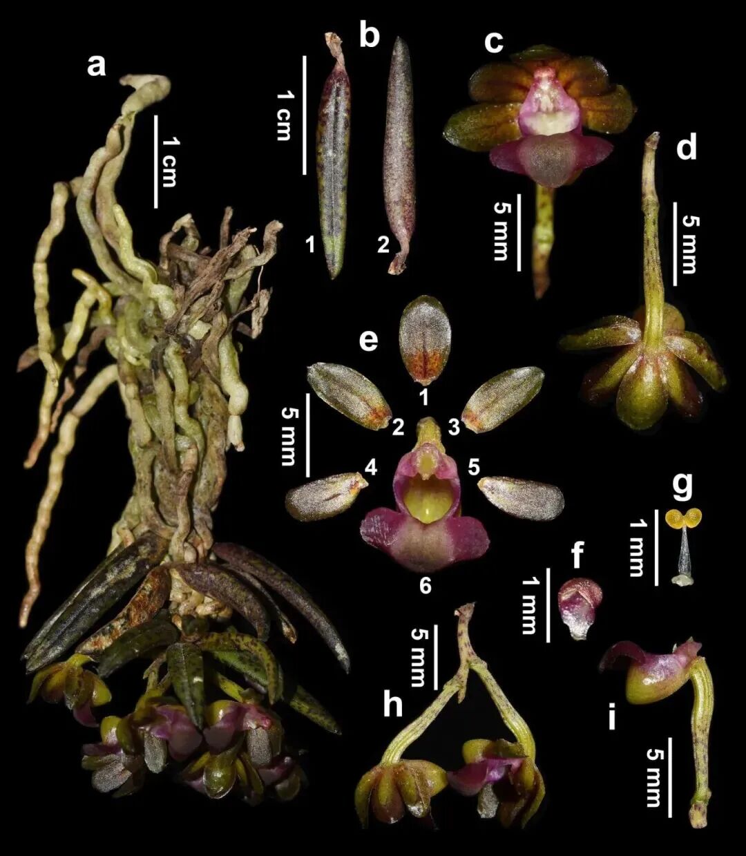 九寨沟盆距兰现仅见于九寨沟五花海栈道边的枯枝上。根据分析,九寨沟盆距兰隶属于盆距兰属列叶组,该种的发现将列叶组的物种数量增加到16种,不仅丰富了物种图谱,更对区域植物生态适应机制研究具有重要价值。