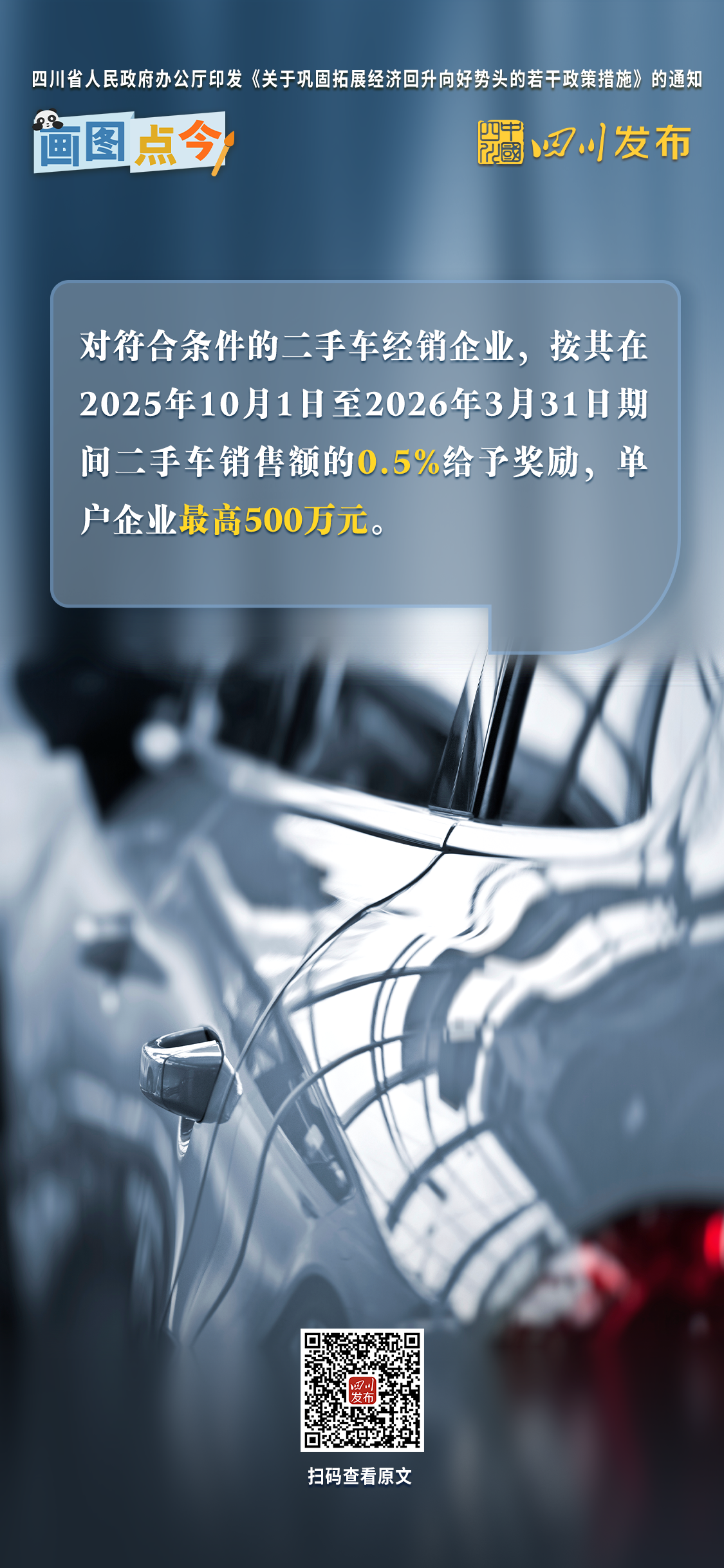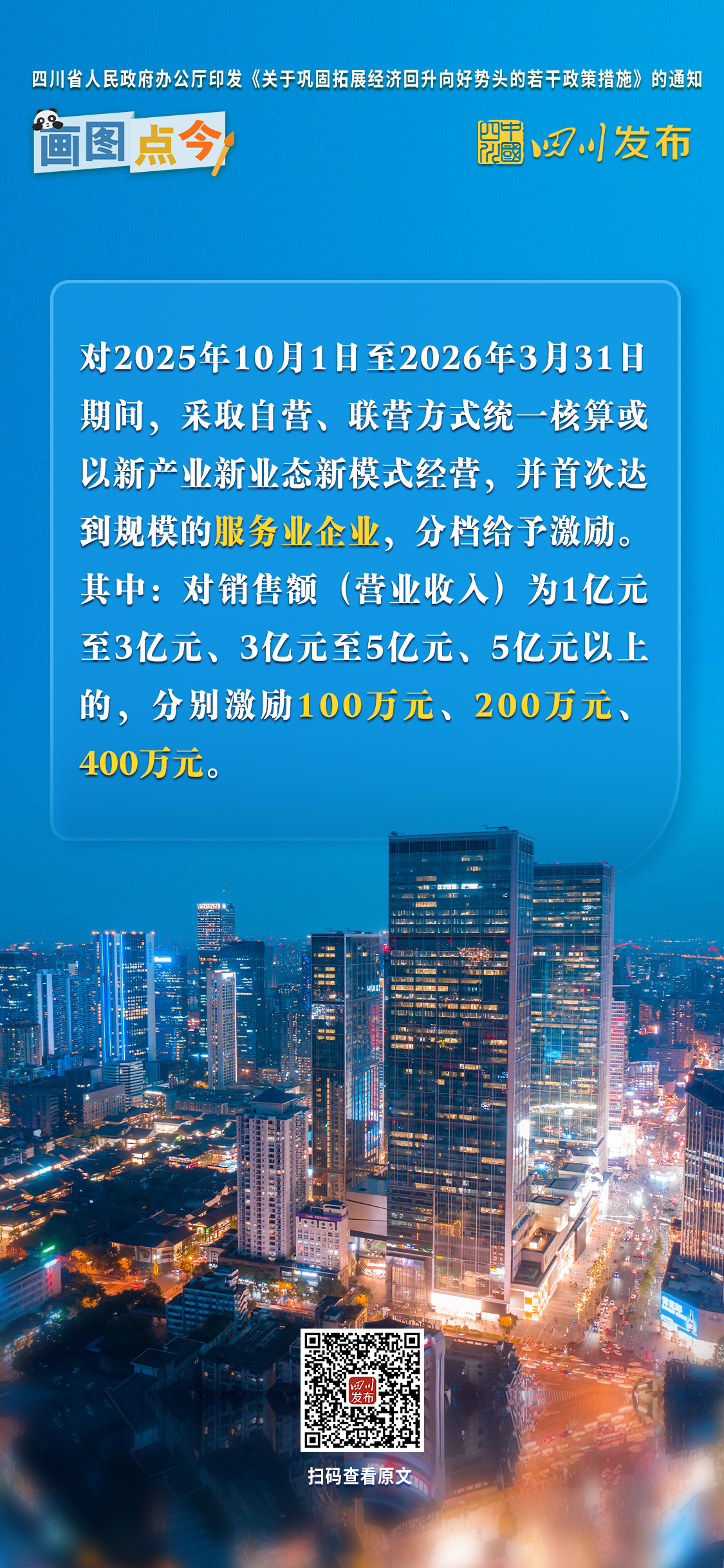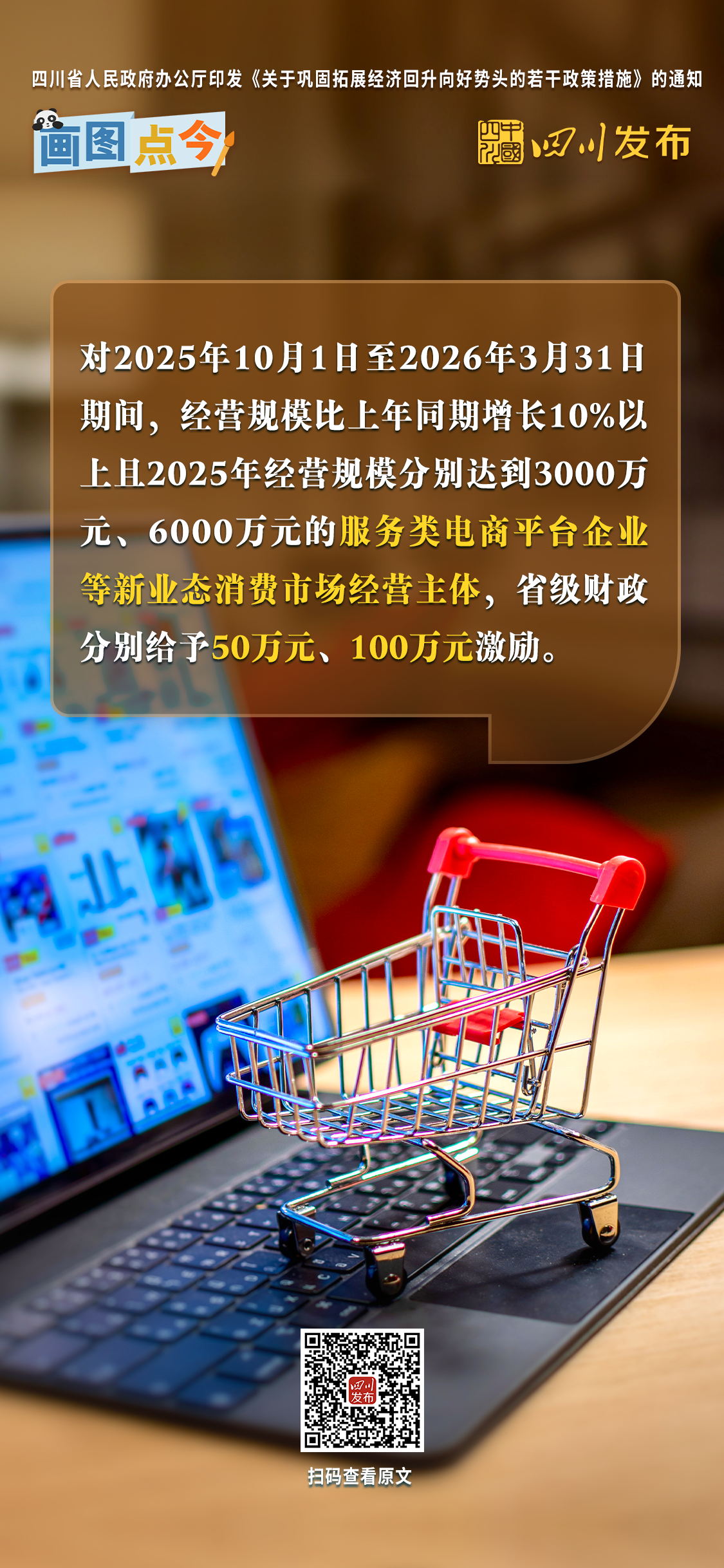 四川发布客户端消息 今日,省政府办公厅印发《关于巩固拓展经济回升向好势头的若干政策措施》,从大力支持消费提振、帮助企业降本减负、推进企业快速成长、促进产业转型升级四方面提出18条奖补、激励等具体措施。一组海报带你get√