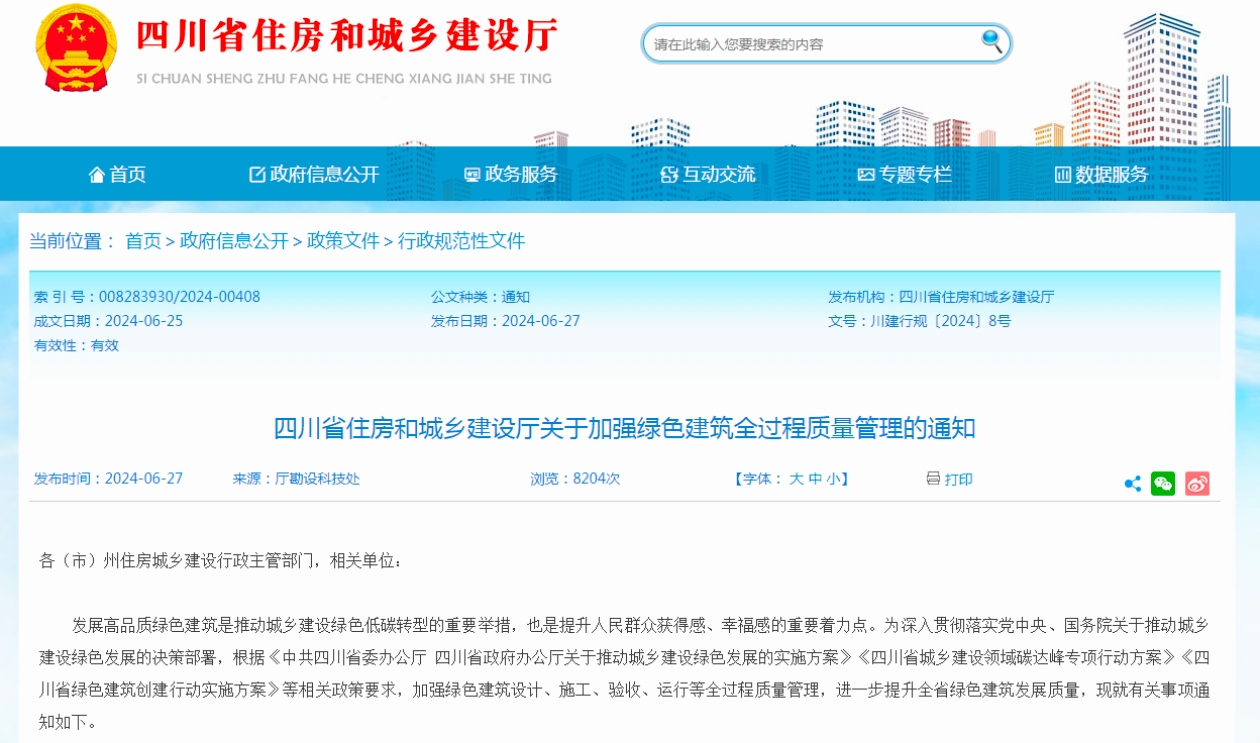 四川省住房和城乡建设厅相关负责人表示,下一步将继续以“双碳”目标为引领,推动绿色建筑向标准化、产业化、智能化方向发展,深入实施绿色建材下乡和政府采购支持政策,加快构建以绿色建筑、绿色建材、绿色施工为支撑的城乡建设新格局,为建设美丽四川、实现建筑业高质量发展贡献力量。