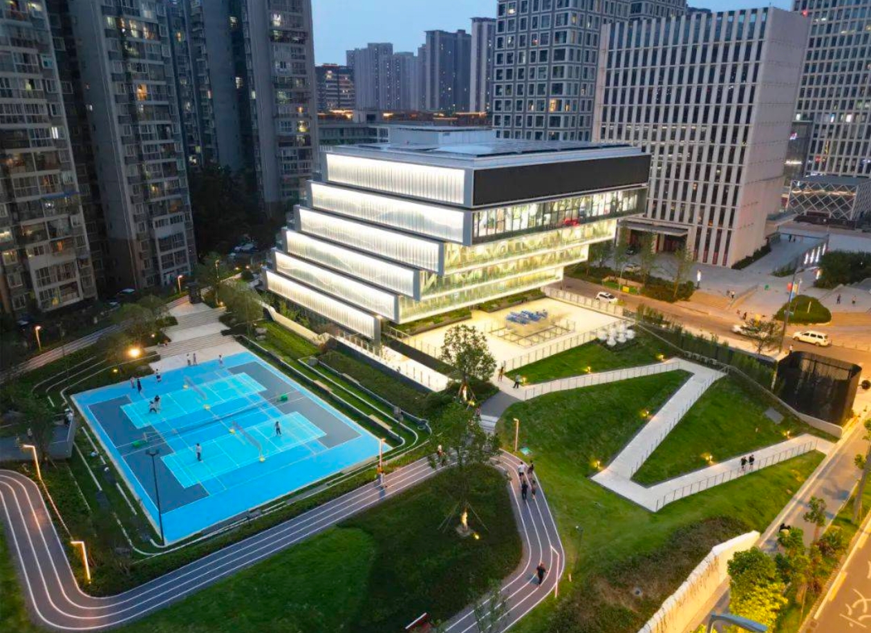 腾讯成都A地块建筑工程项目则通过回字形布局与连续退台设计、底层架空设计,将建筑设计与适宜本地的绿色建筑技术结合,形成连续均质分布的室外景观空间,降低建筑的使用能耗,展现了绿色建筑与现代空间美学的有机融合。
